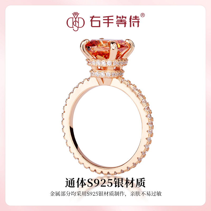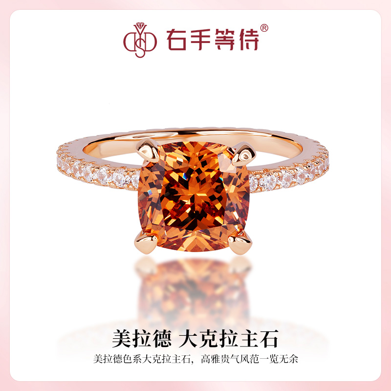 右手等待小方糖欧美满钻奢华焦糖色S925纯银镀玫瑰金钻戒指闭口女