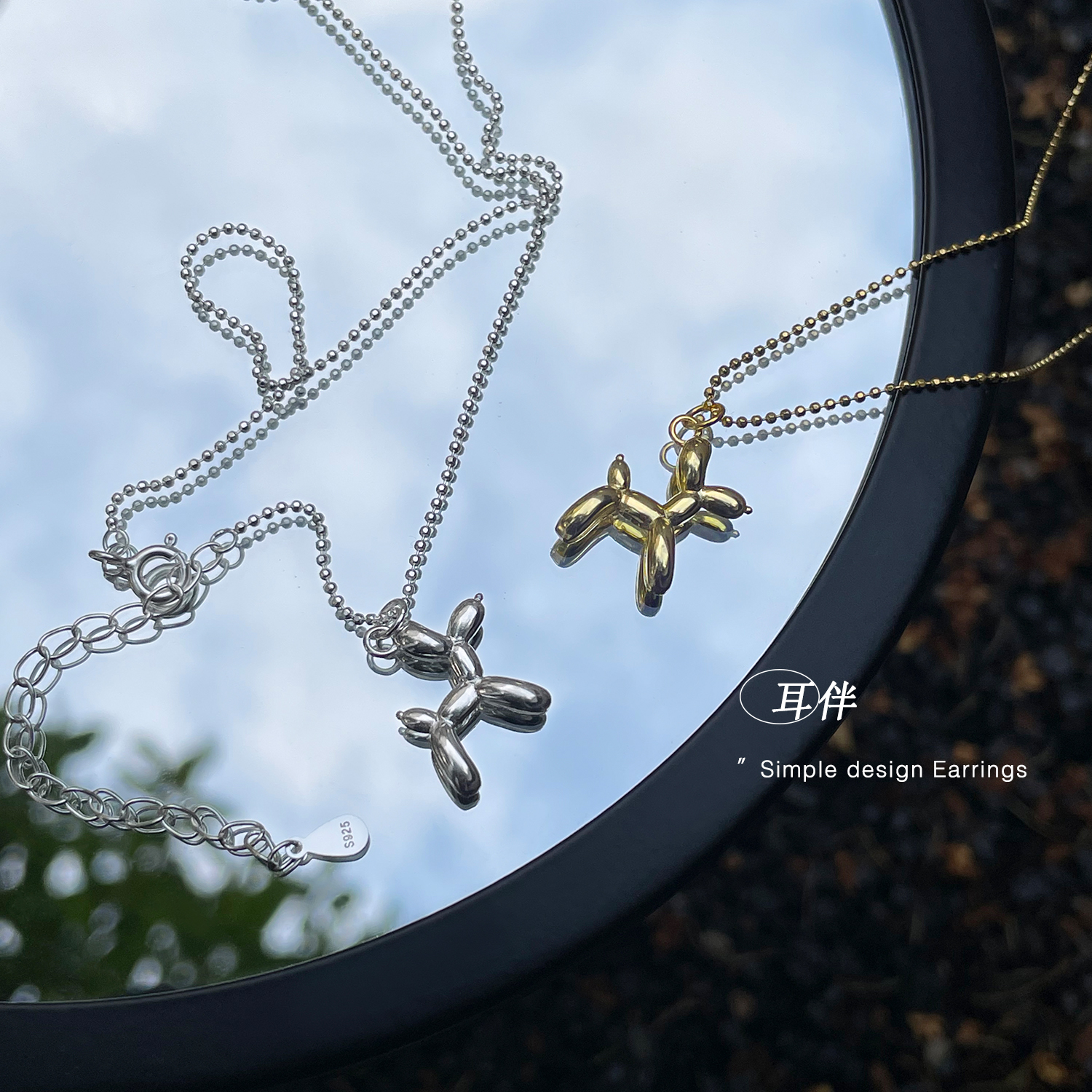 925纯银项链女轻奢小众2023新款爆款气球狗银色高级感卫衣链银饰