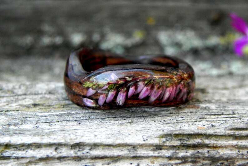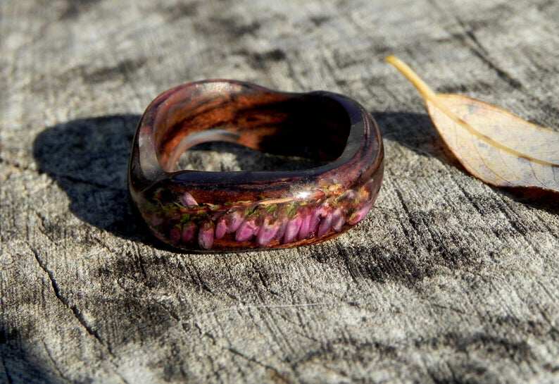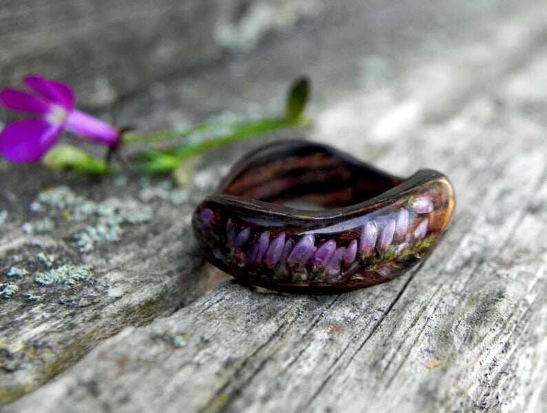 乌克兰代购Nature◇手作复古森林自然真正紫色花树脂女士木制戒指