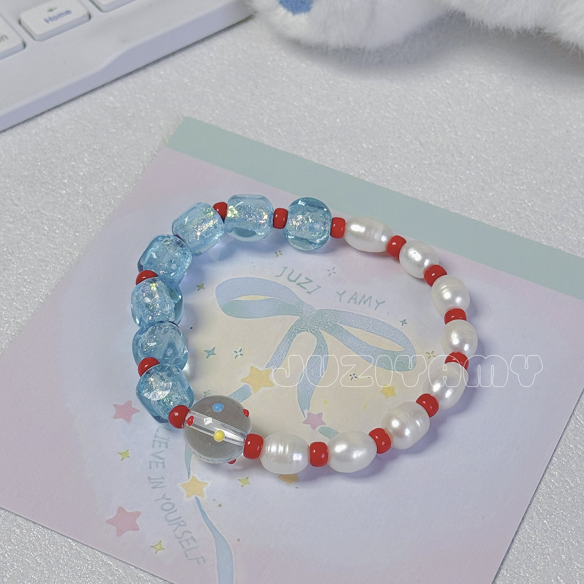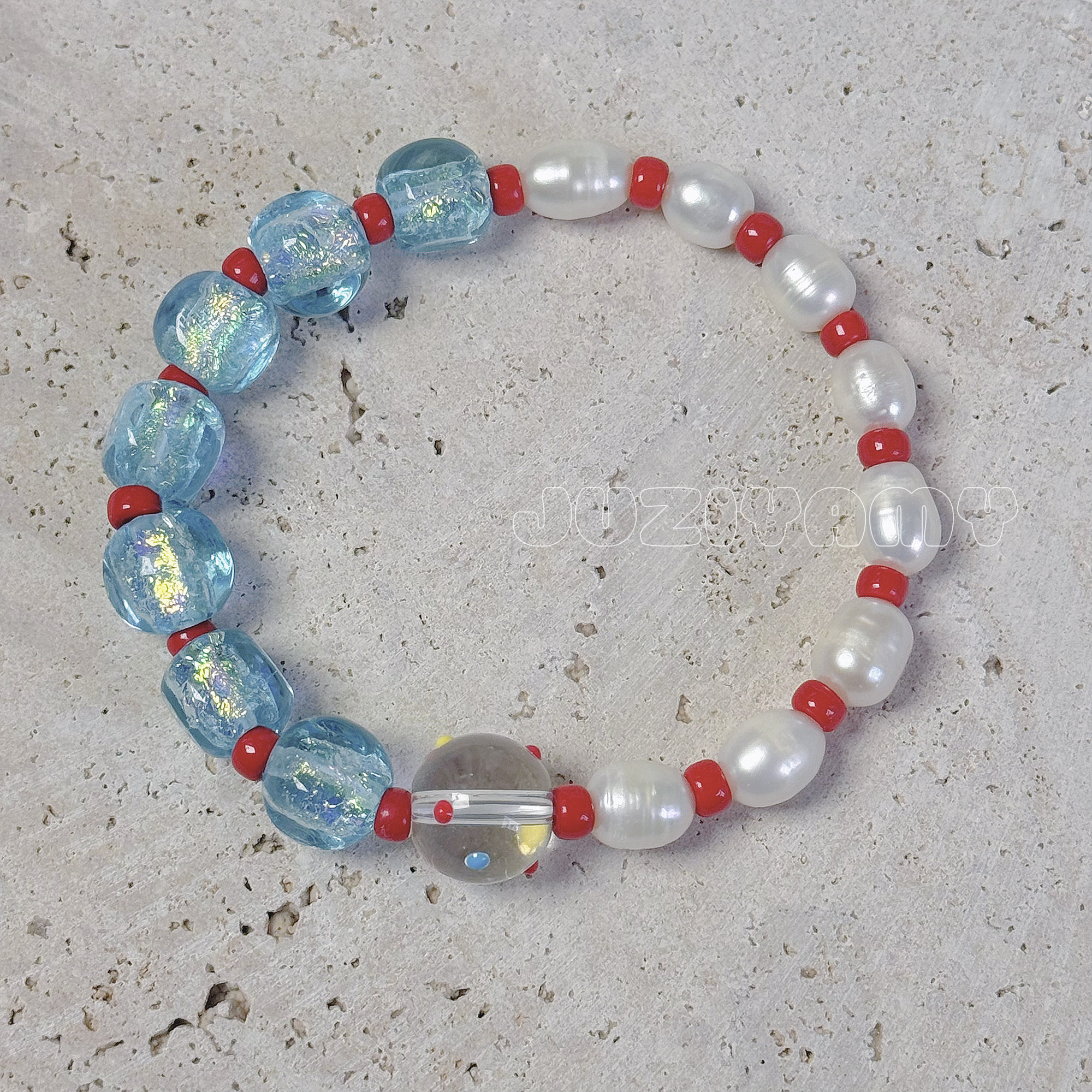 【珍珠雨】橘子yamy原创蓝红色系淡水珍珠手链女 包邮