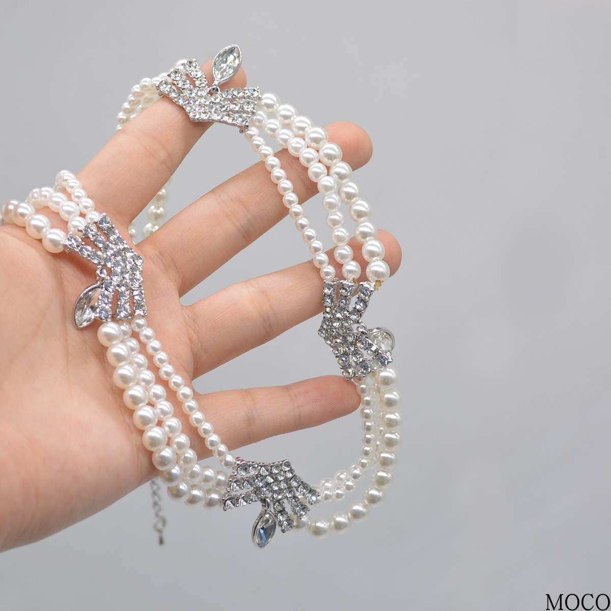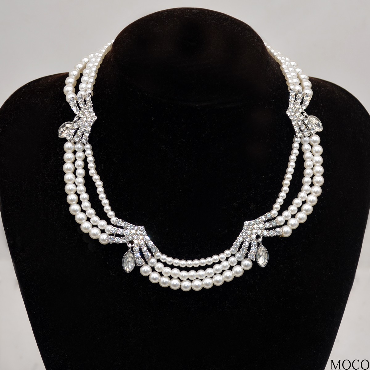 法式复古珍珠多层项链高级感气质镶钻锁骨链时尚个性百搭颈链配饰