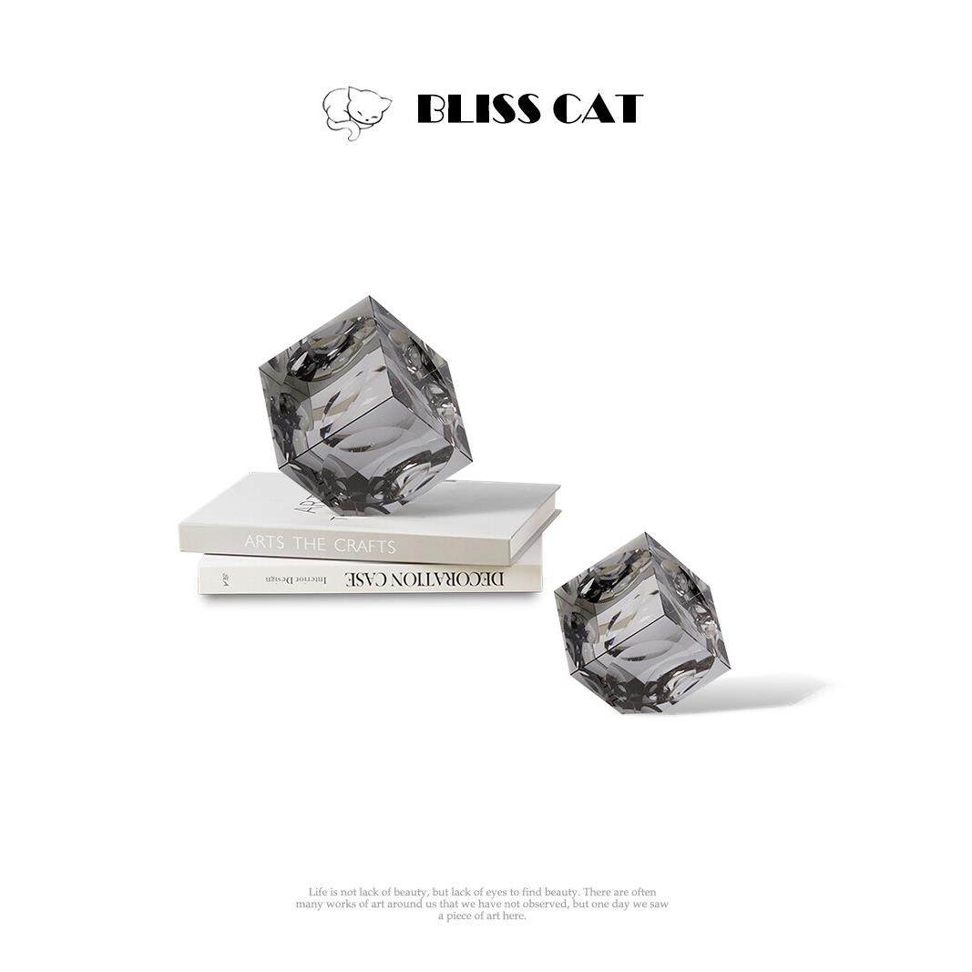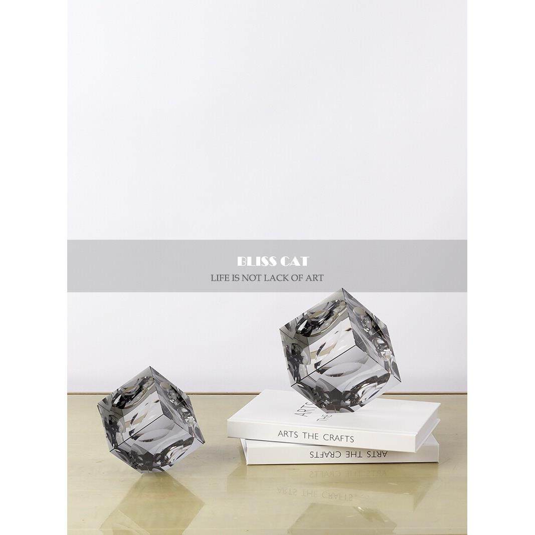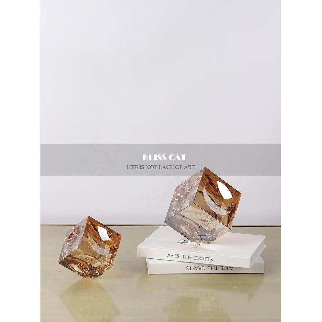 现代轻奢灰色方形水晶摆件样板房客厅茶几桌面咖色方块创意装饰品
