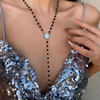 1条黑色玻璃珠彩色玻璃长项链Y项链