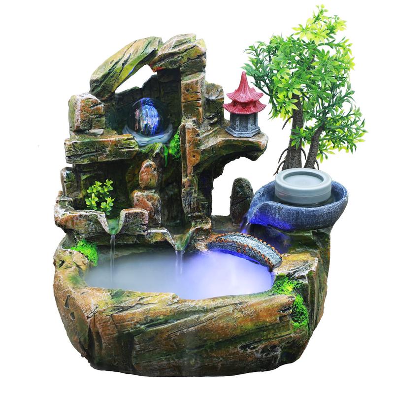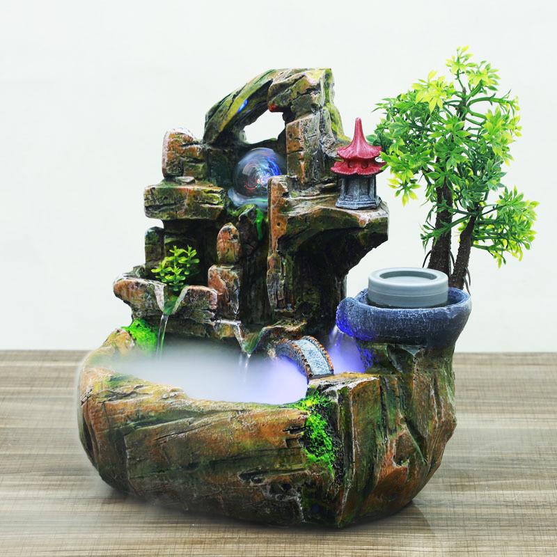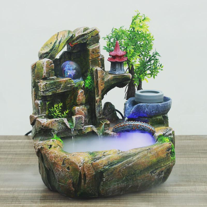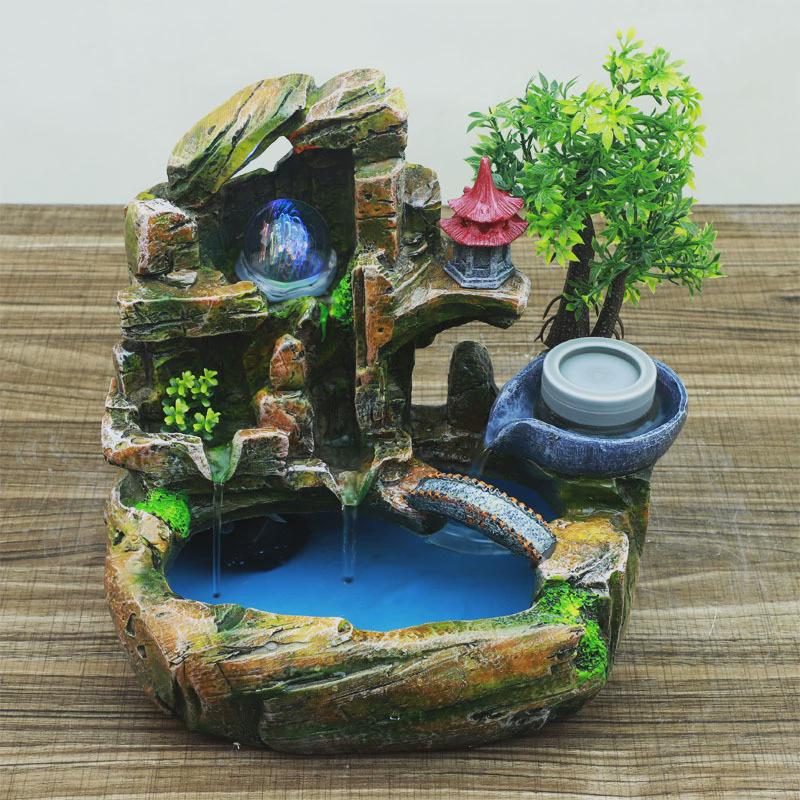 新中式高山喷泉循环水办公室客厅小型仿真树鱼缸摆件厂家直销