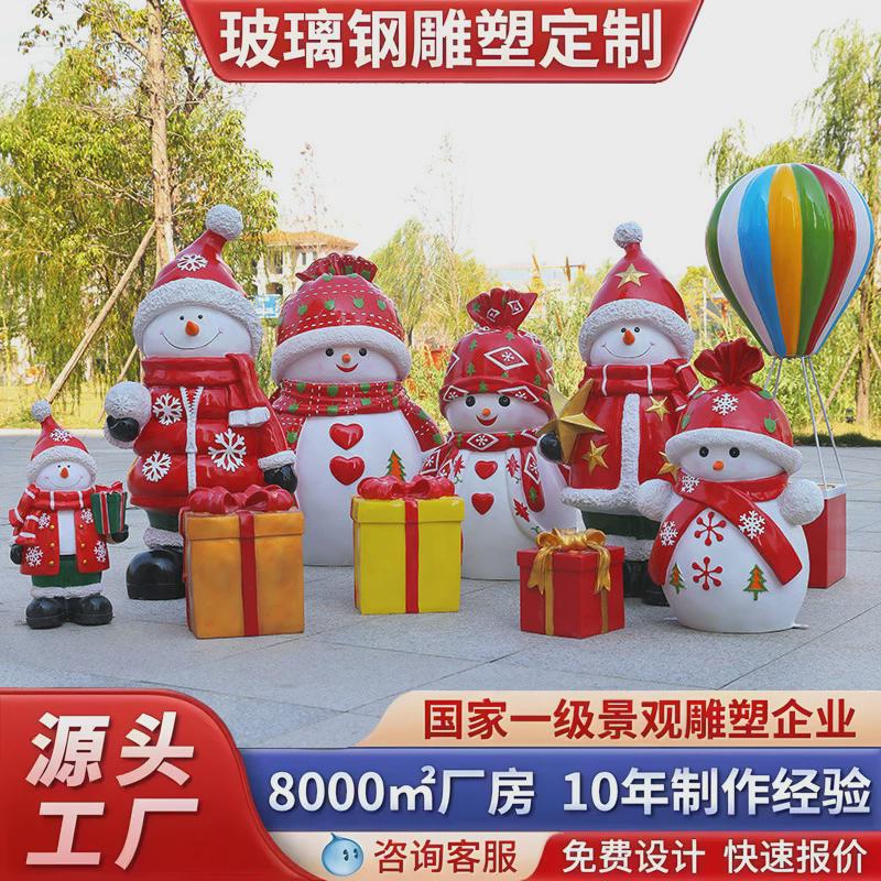 及圣诞商场美陈装饰道具玻璃钢雕塑落地摆件雪人模型卡通雕塑工艺