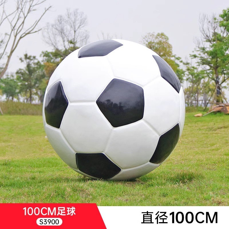 户外玻璃钢学校足球模型摆件仿真体育场草坪装饰篮球排球景观雕塑