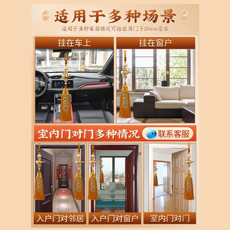 五帝钱葫芦挂件门对门真品铜钱串纯铜车吉祥结流苏挂件.饰乔迁礼