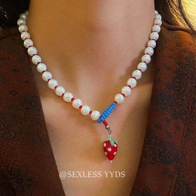 yyds!甜酷红色草莓串珠珍珠项链choker颈链小众设计高级感锁骨链