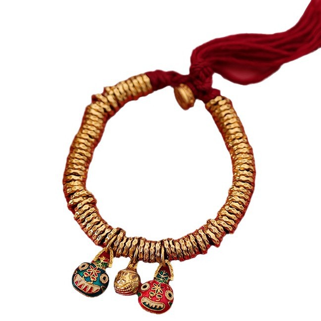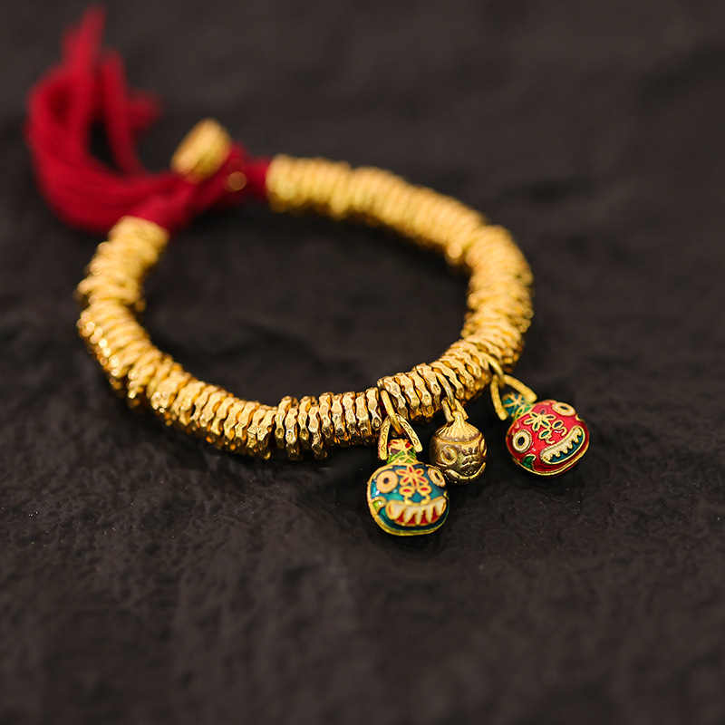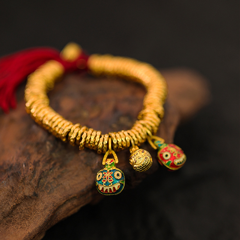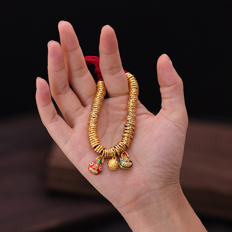 保色沙金吞金兽盘缠手链吊坠滴溜古法黄金色锤纹金圈手串diy配件
