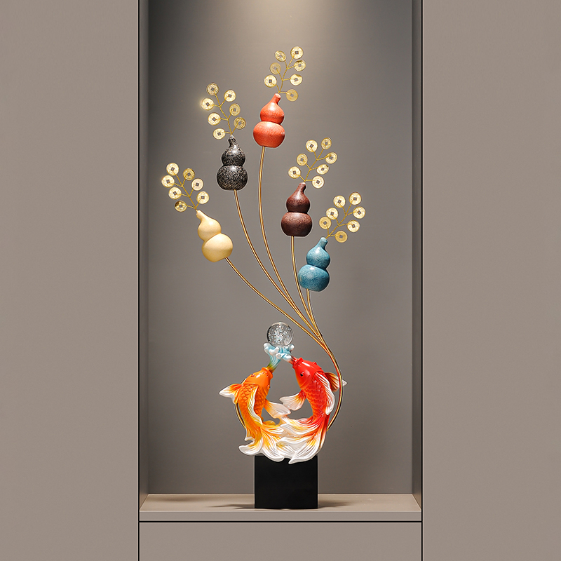 年年有余五福临门葫芦摆件入户玄关壁龛客厅竖高装饰乔迁新居礼物