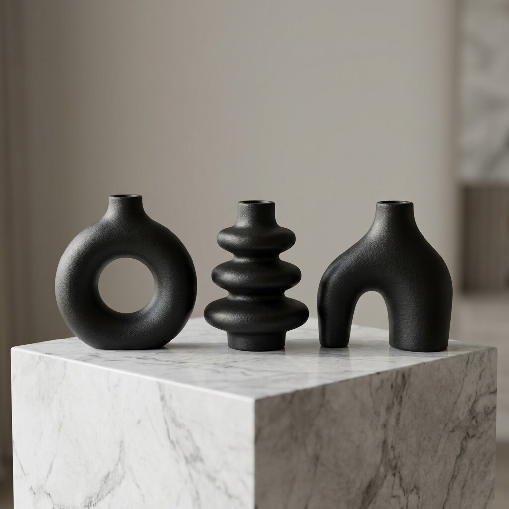 现代简约黑色几何造型花瓶创意家居装饰摆件客厅玄关软装