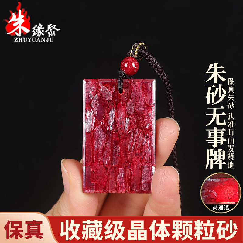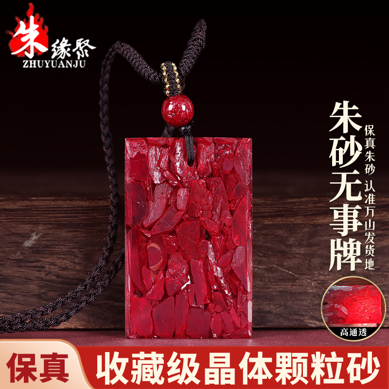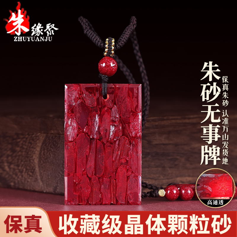 朱缘聚朱砂吊坠男款正品官方旗舰店晶体颗粒全透光无事牌挂件收藏