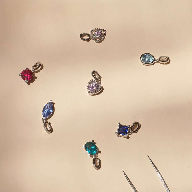 LLab 原创设计s925银制银彩色进口锆石吊坠万能扣DIY项链吊坠多款