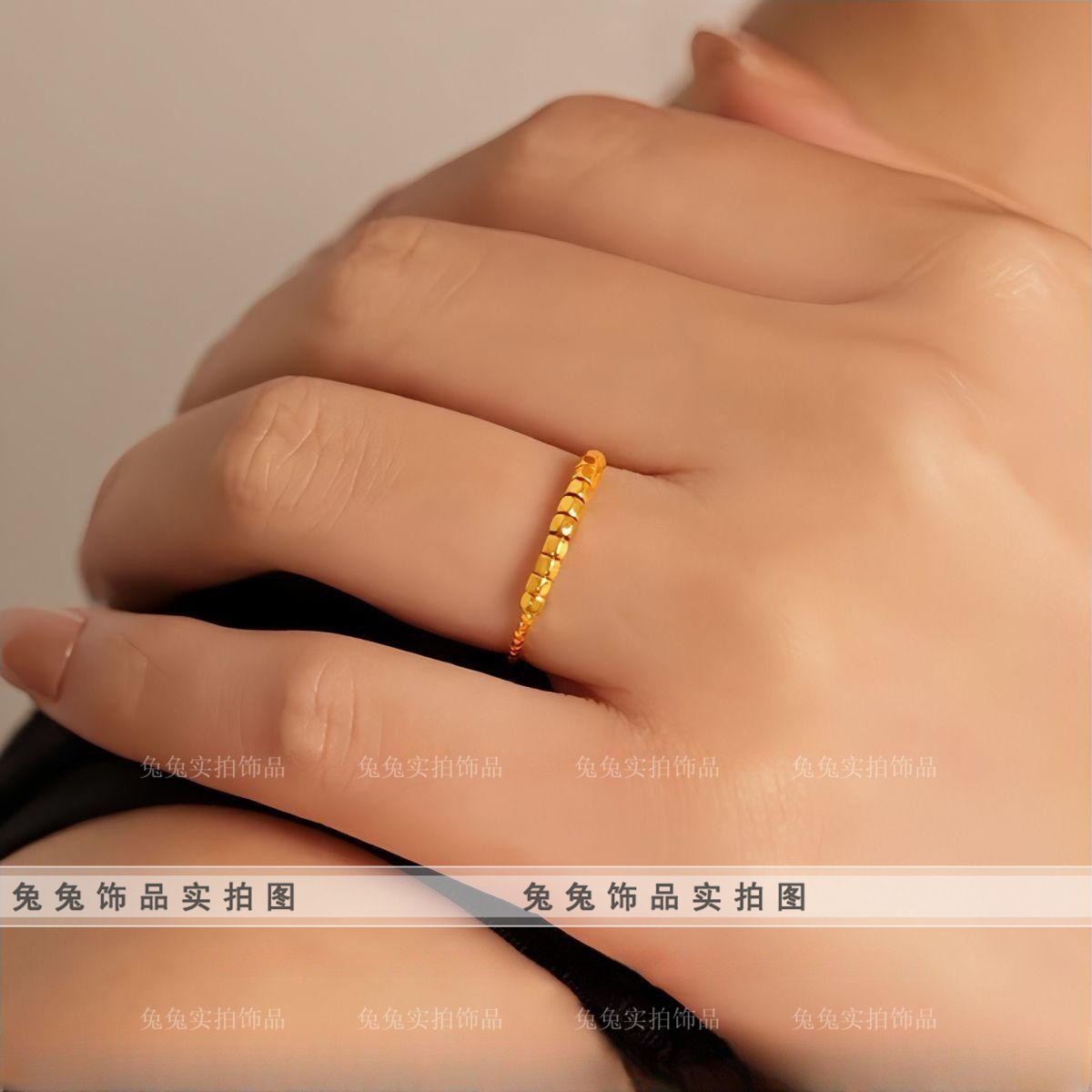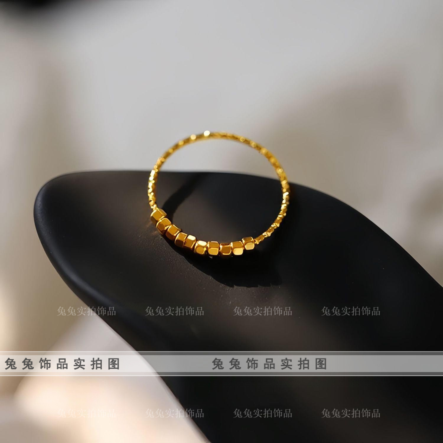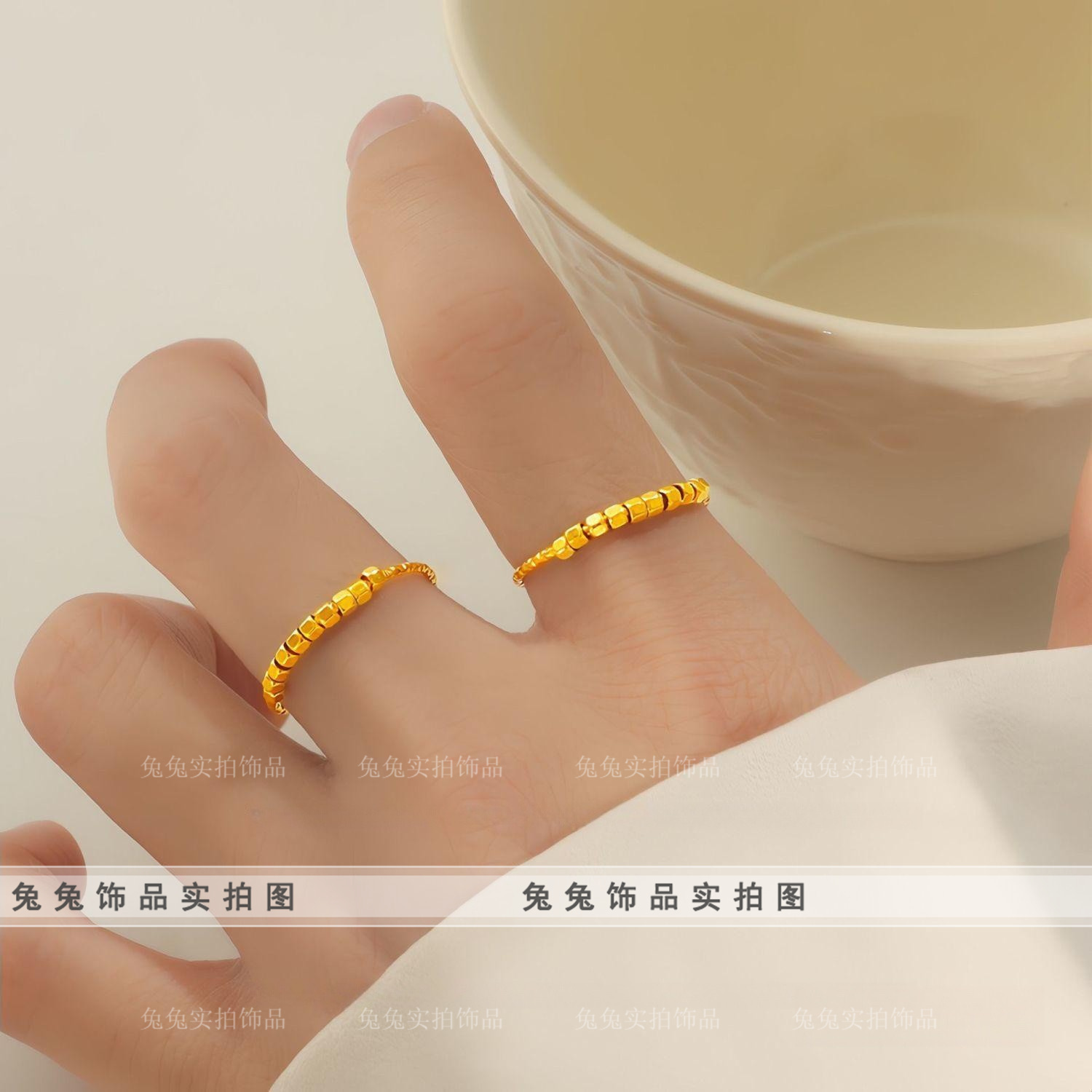 【钛钢不掉色】十全十美小方糖蹦迪珠碎金子方块爆闪情侣闺蜜戒指