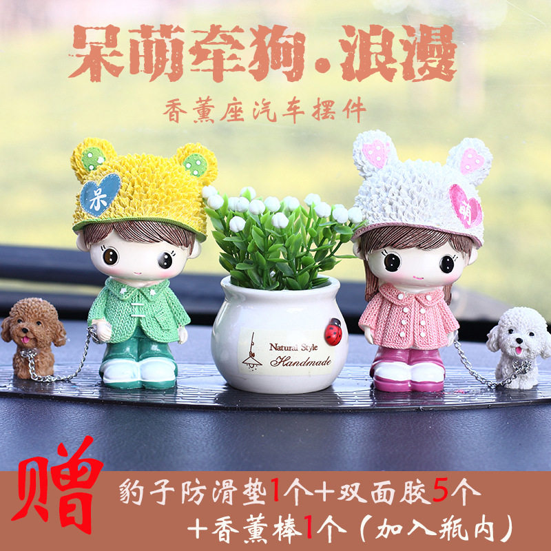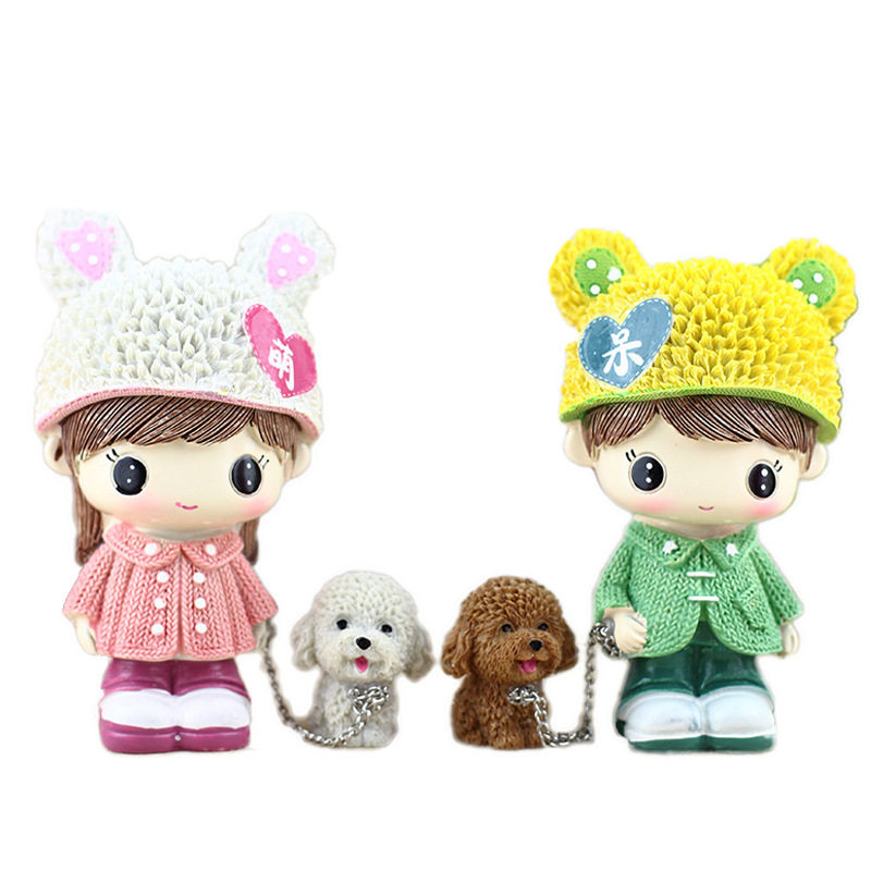 呆萌遛狗情侣公仔创意家居装饰工艺品汽车摆件ins走心礼品新