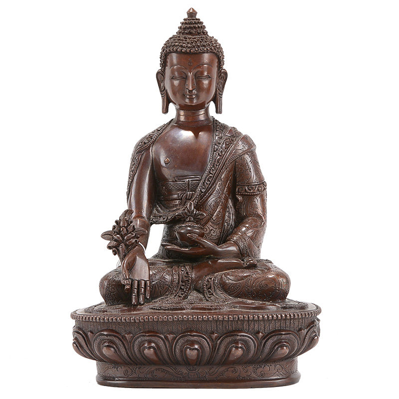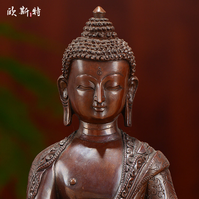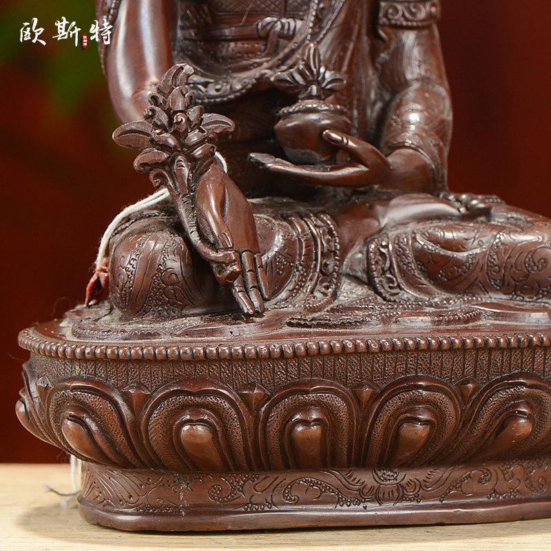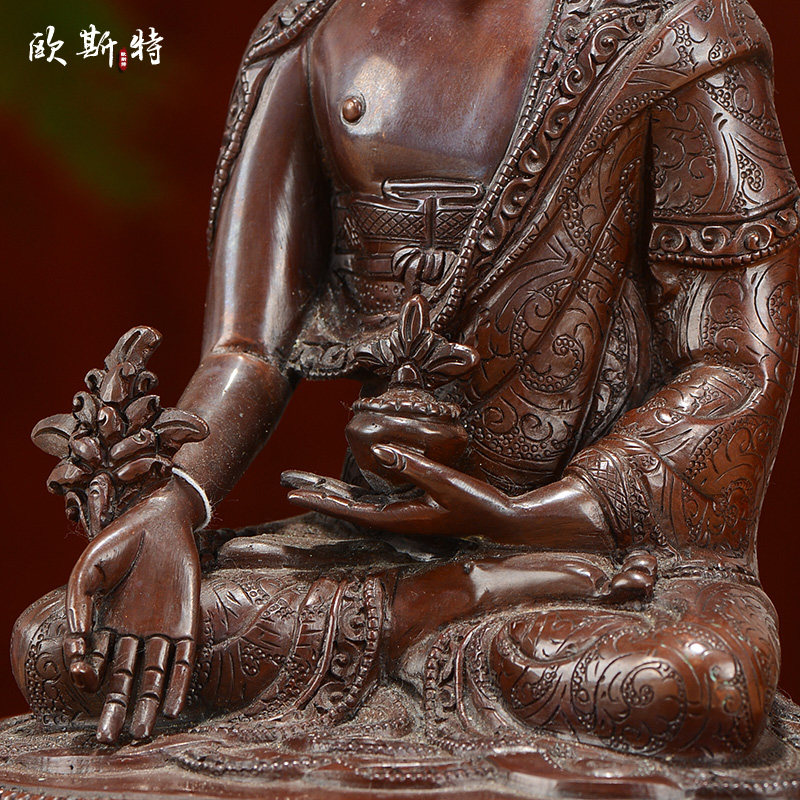 欧斯特药师佛铜像摆件 尼泊尔手工紫铜雕花西藏家居客厅装饰7寸佛