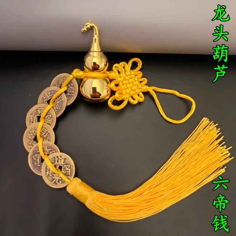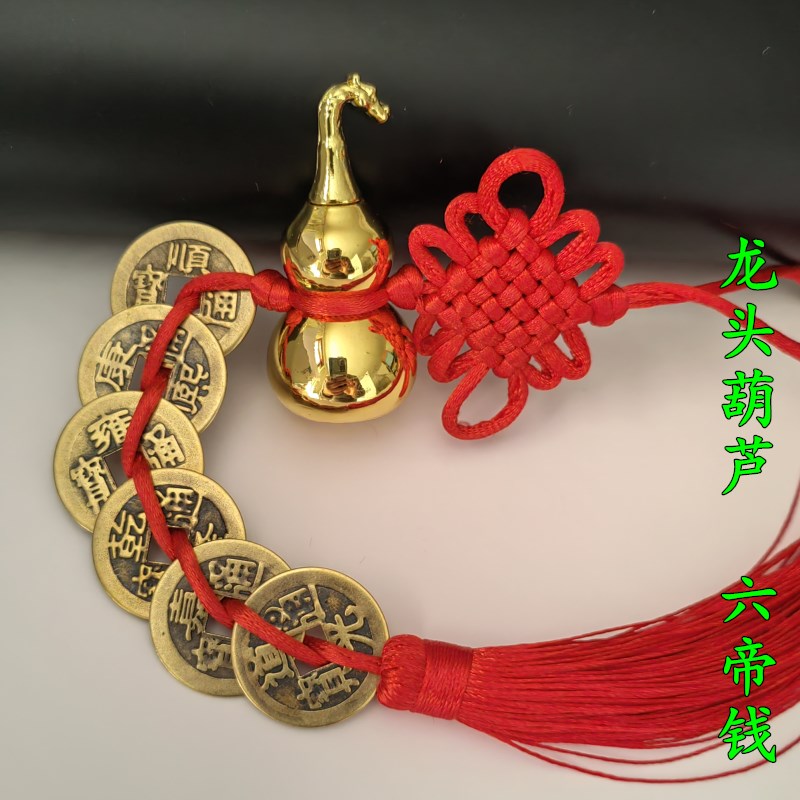五对门钱绳六帝j化门黄色纯铜钱对葫芦五帝挂件龙头电梯黄二黑红
