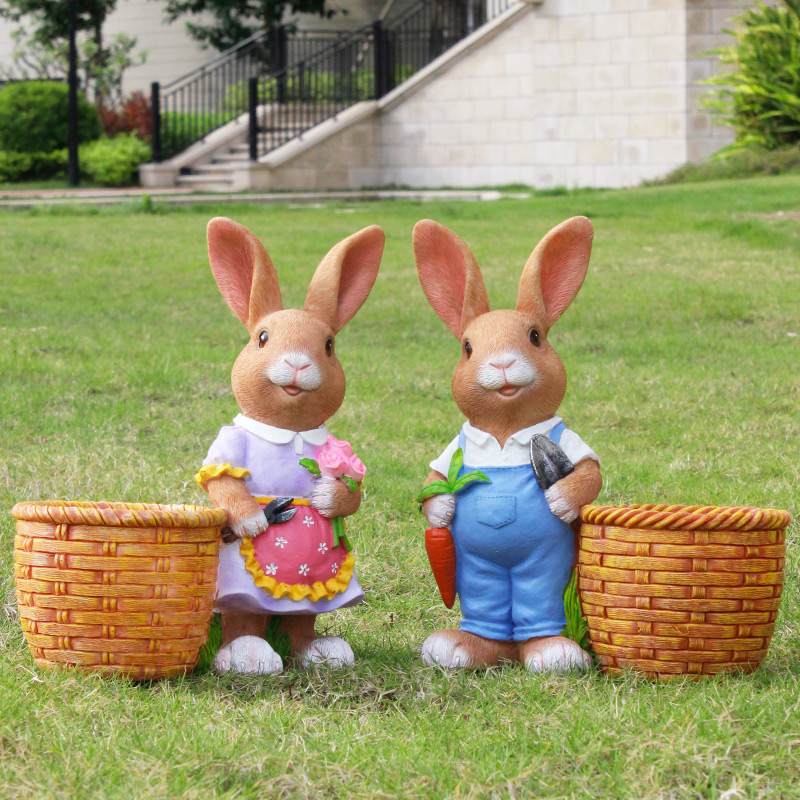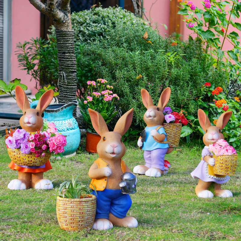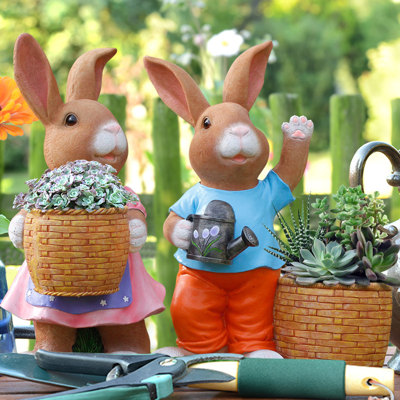 户外花园装饰庭院摆件卡通可爱兔子花盆仿真动物花缸园林景观雕塑