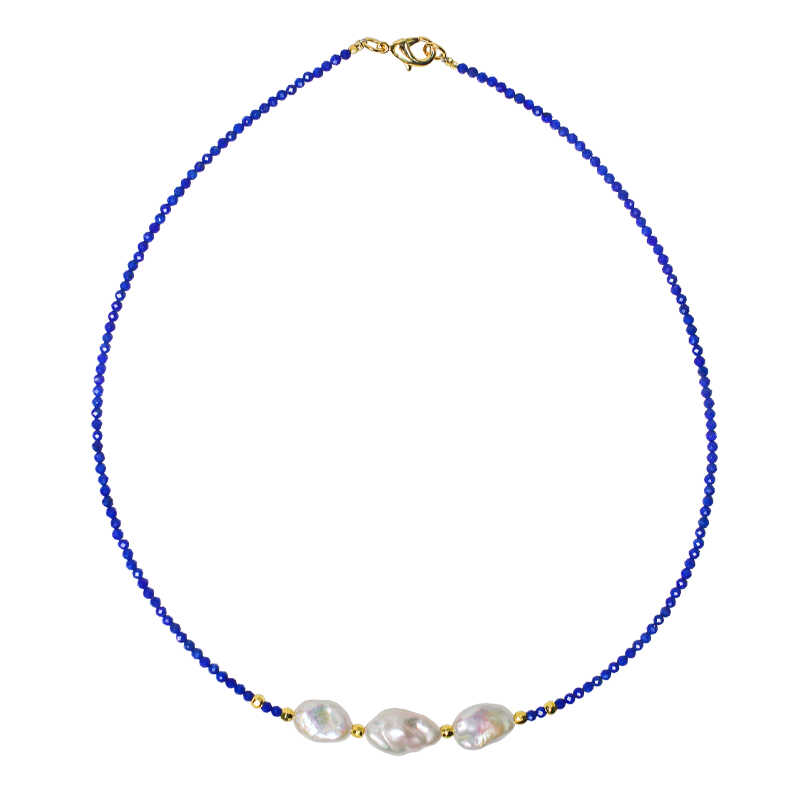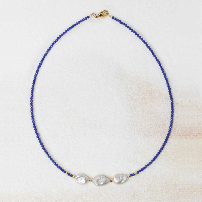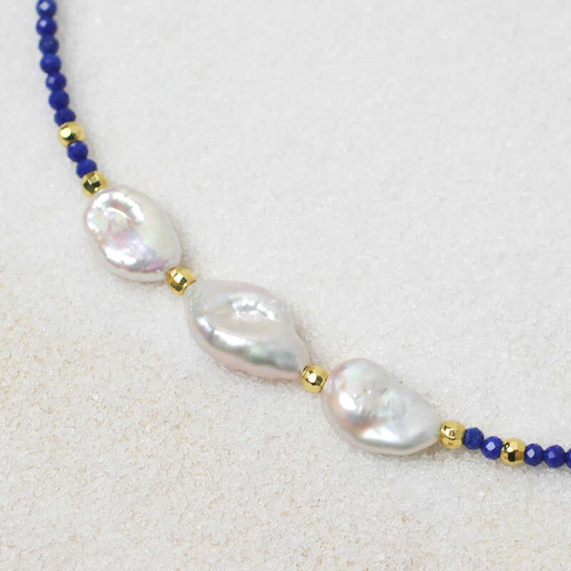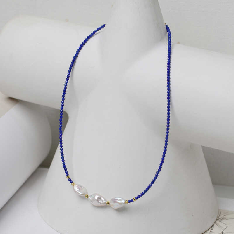 朗睦原创刻面青金石蓝色巴洛克限量珍珠手工串珠波西米亚项链女