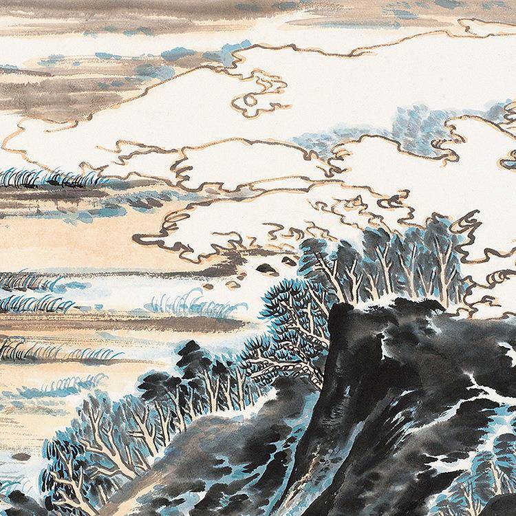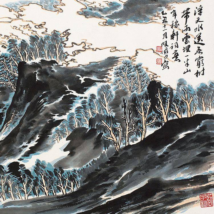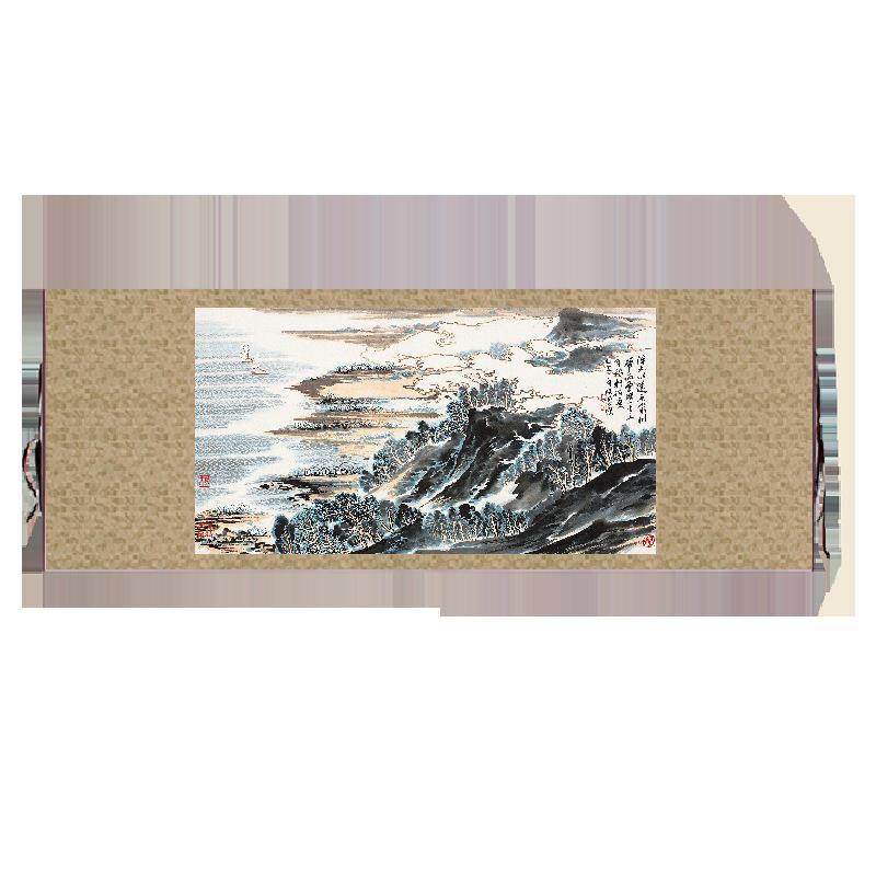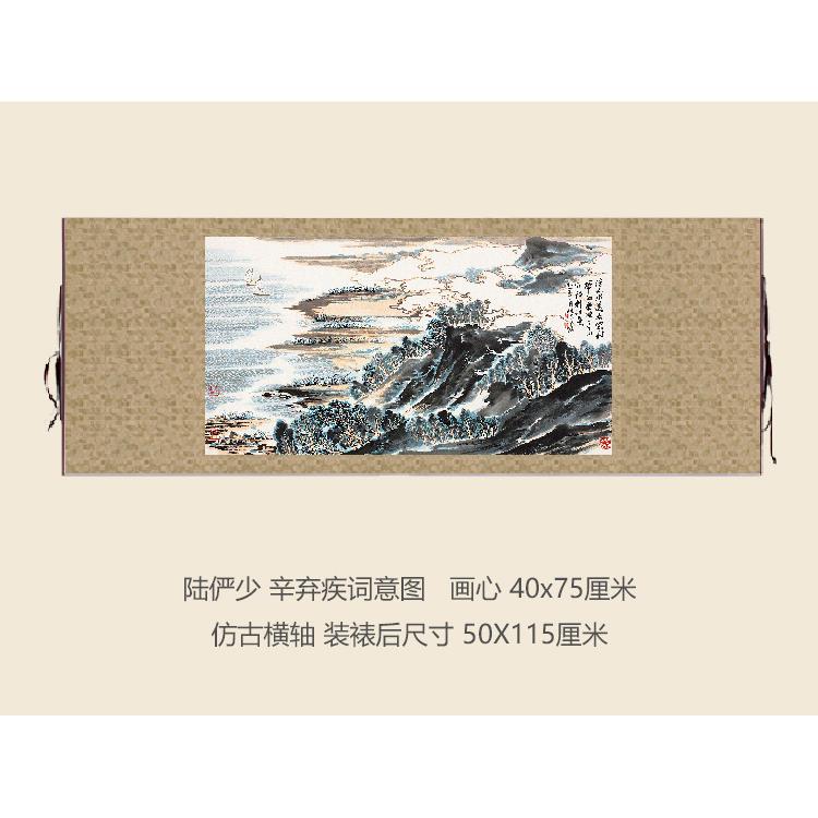 陆俨少辛弃疾词意图山水画挂轴条幅卷轴名画复制品书房玄关挂画