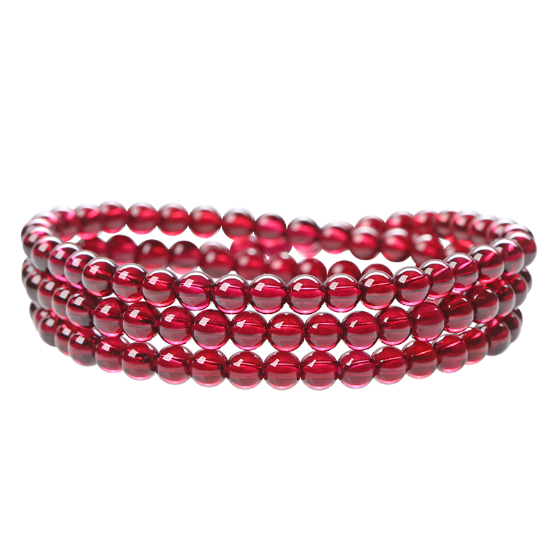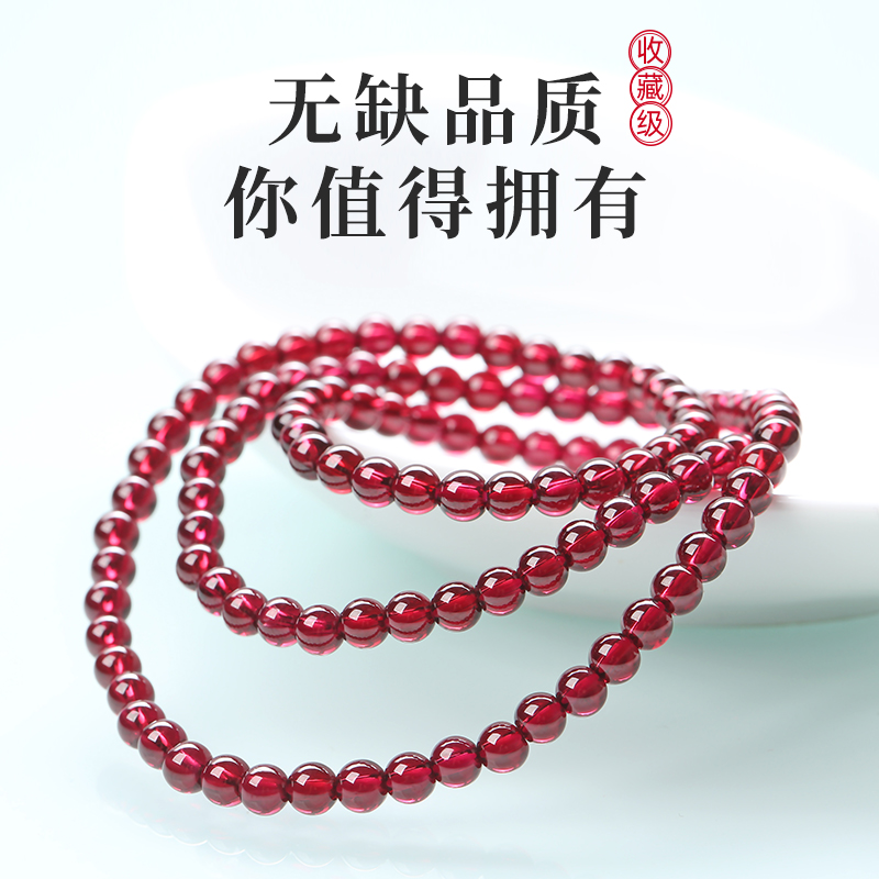 庆祥泰莫桑比克收藏净体酒红石榴石手链女款单圈三圈手串天然珠子