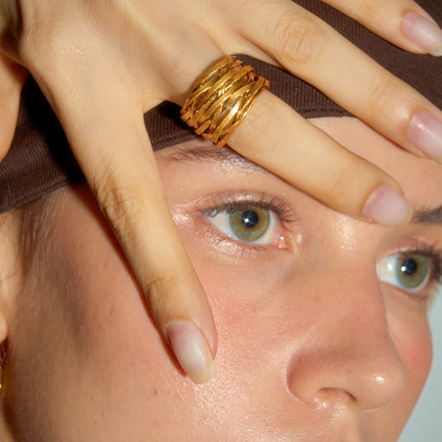 董洁同款手工金属编织开口戒指女小众设计高级感老钱风可调节指环