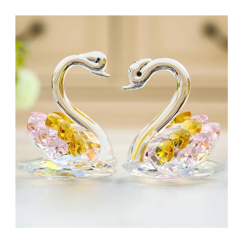 琉璃天鹅新房装饰品动物小摆件水晶玻璃工L艺品送情人创意结婚礼