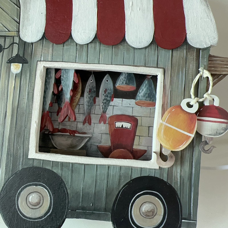 Ciciglobuy小众设计师手工手绘木制卡通壁灯装饰品北极熊小商店摆