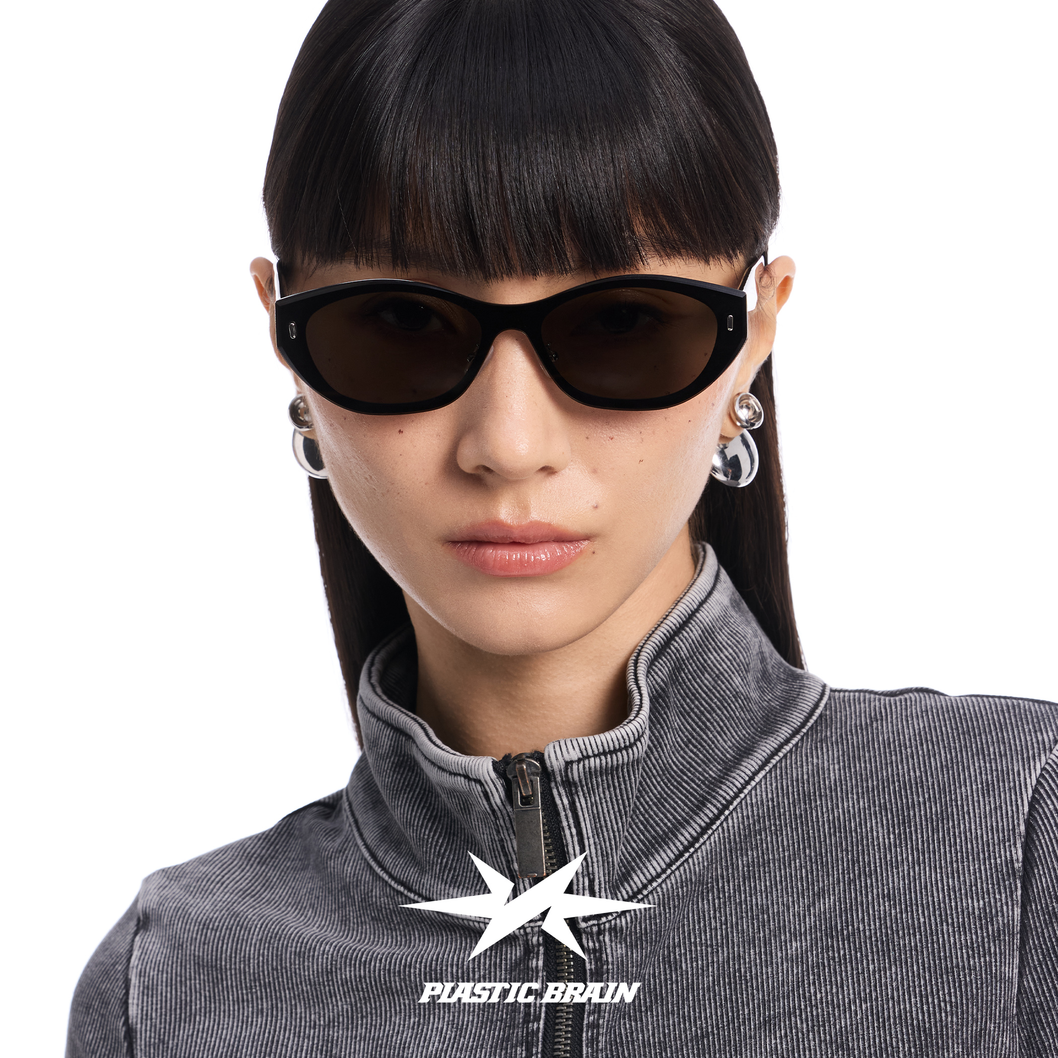 PLASTIC BRAIN复古金属夹片一体镜片太阳镜超轻显脸小猫眼墨镜女