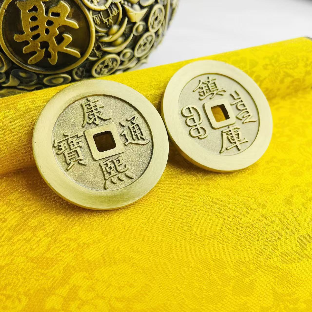 纯铜五帝钱加大加厚招财铜钱实心雕刻压门槛装修招财镇宅挂件摆件