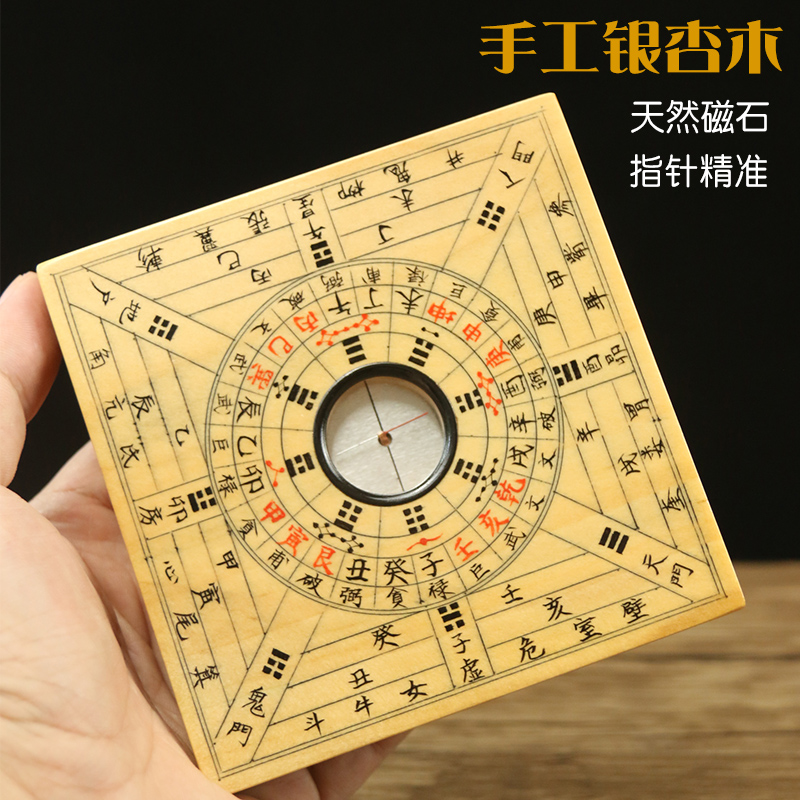 手工银杏木罗盘高精度随身携带三寸初学者专业风水盘指南针综合盘