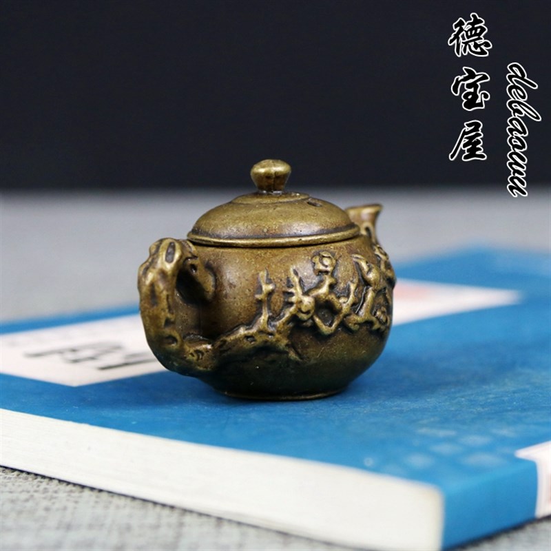 仿古铜器迷你小铜壶喜上眉梢纯铜茶壶水滴旺财运文玩把把壶手把件