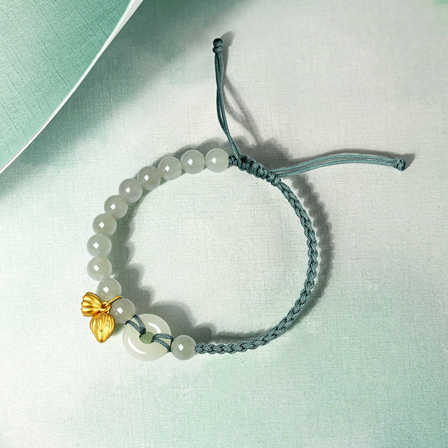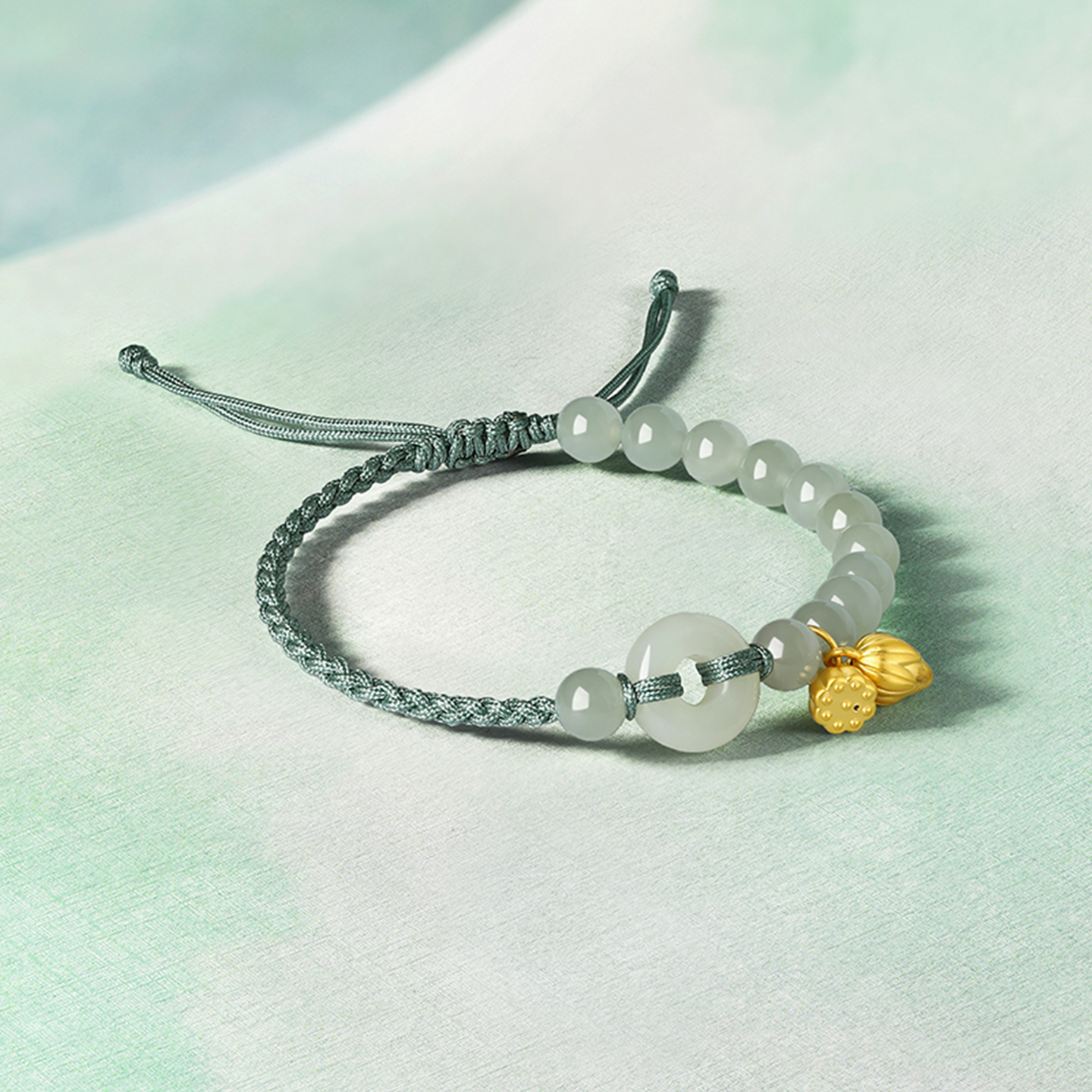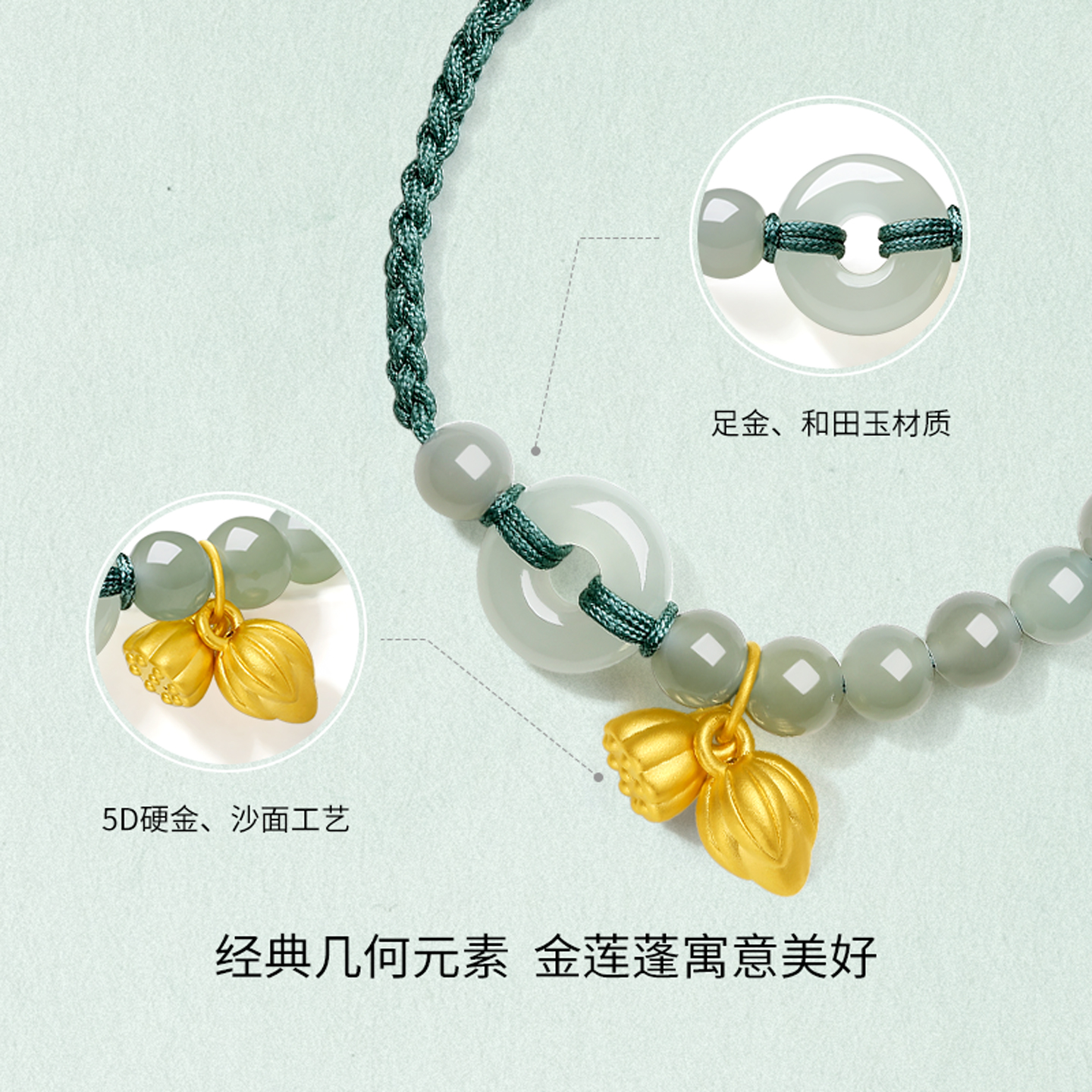 周六福和田玉手绳女款金镶玉清雅福莲手链手饰官方旗舰店节日礼物