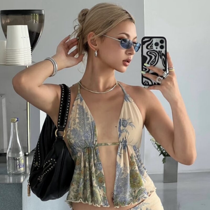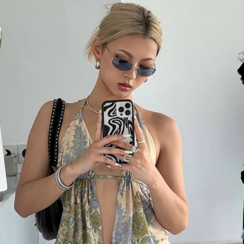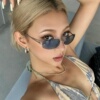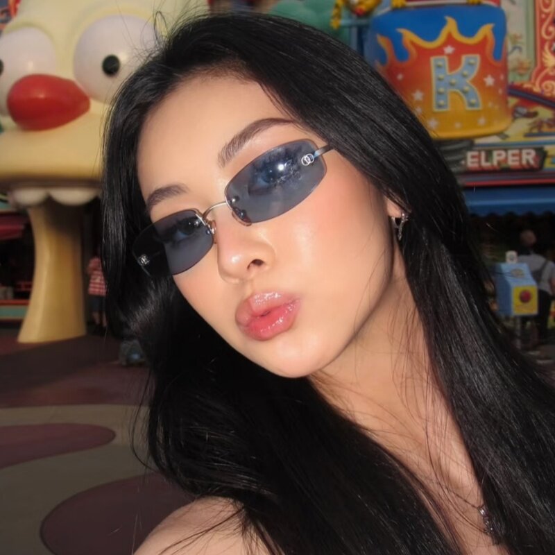 欧美辣妹风无边框方形蓝色太阳眼镜y2k亚裔墨镜造型高级感中古女