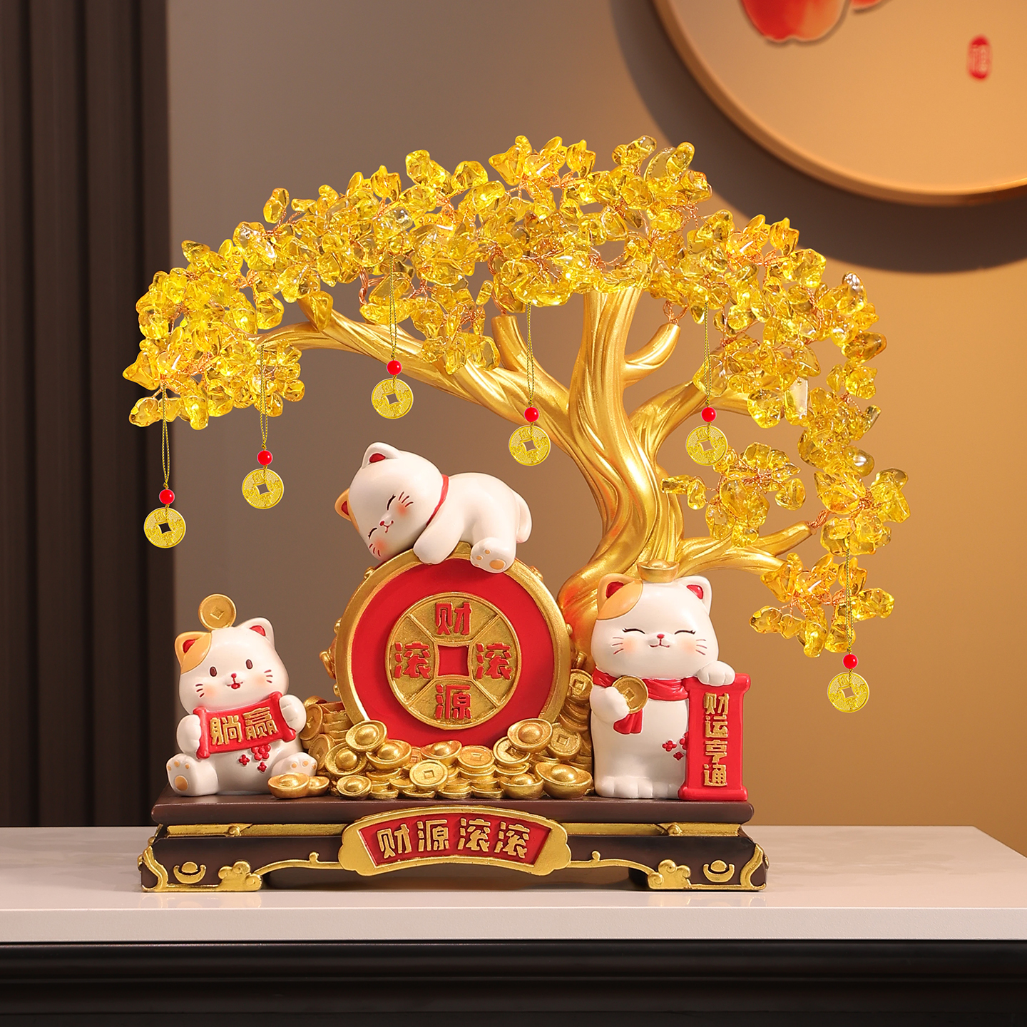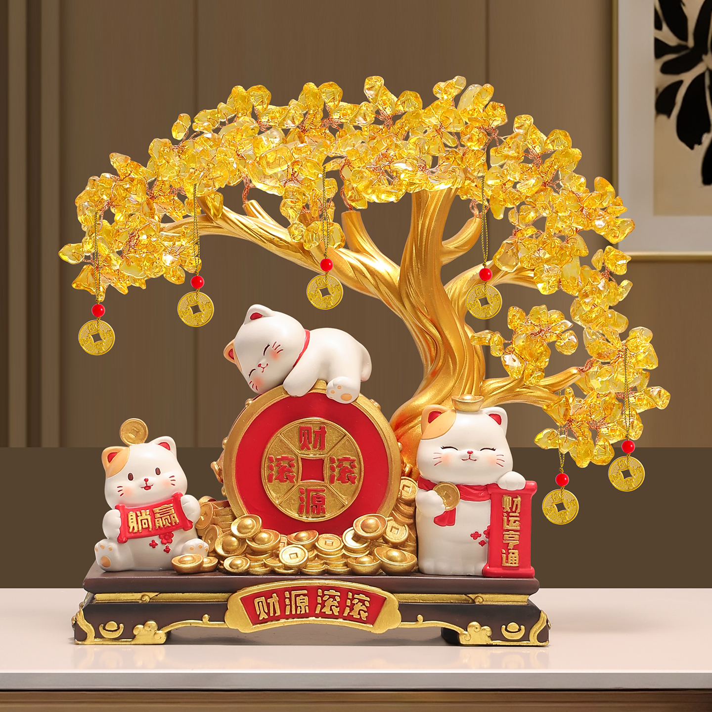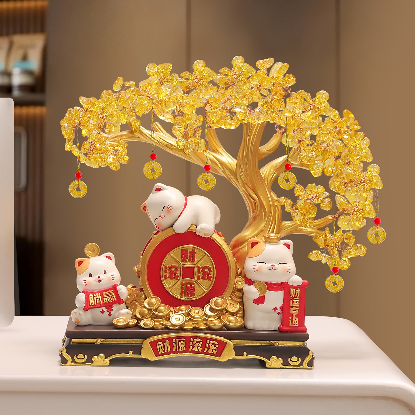 财源滚滚发财树招财猫摆件客厅玄关电视柜高档装饰品乔迁新居礼物