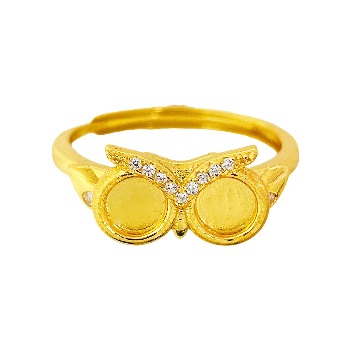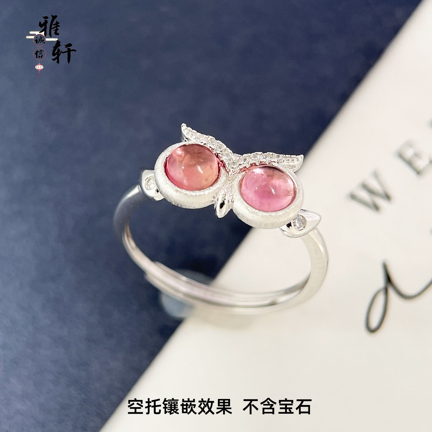 个性小众猫头鹰款戒托S925银镶嵌圆形蛋面3*3mm4*4mm活圈女戒空托