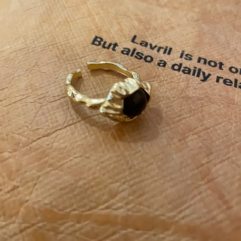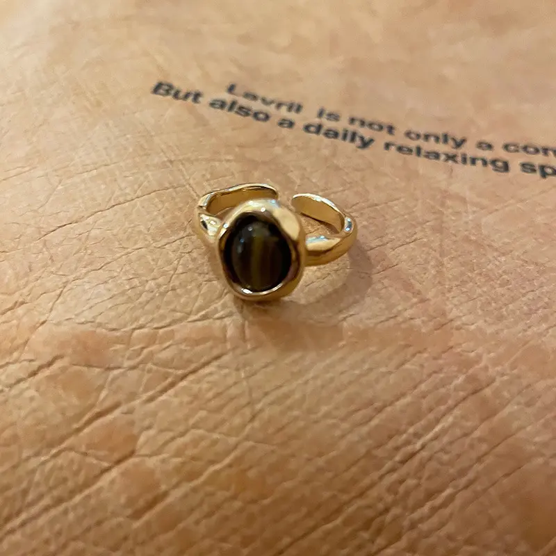 美拉德人造虎眼石开口戒指小众复古设计感食指戒轻奢高级感手饰女