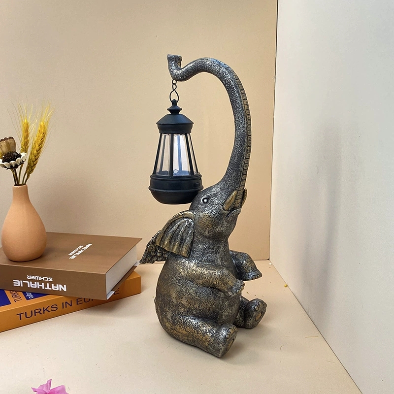 厂家直销太阳能庭院灯大象挂灯摆件花园庭院布置装饰树脂工艺摆件