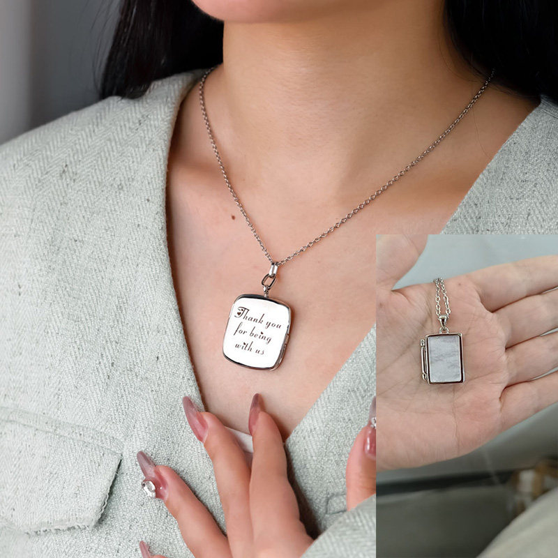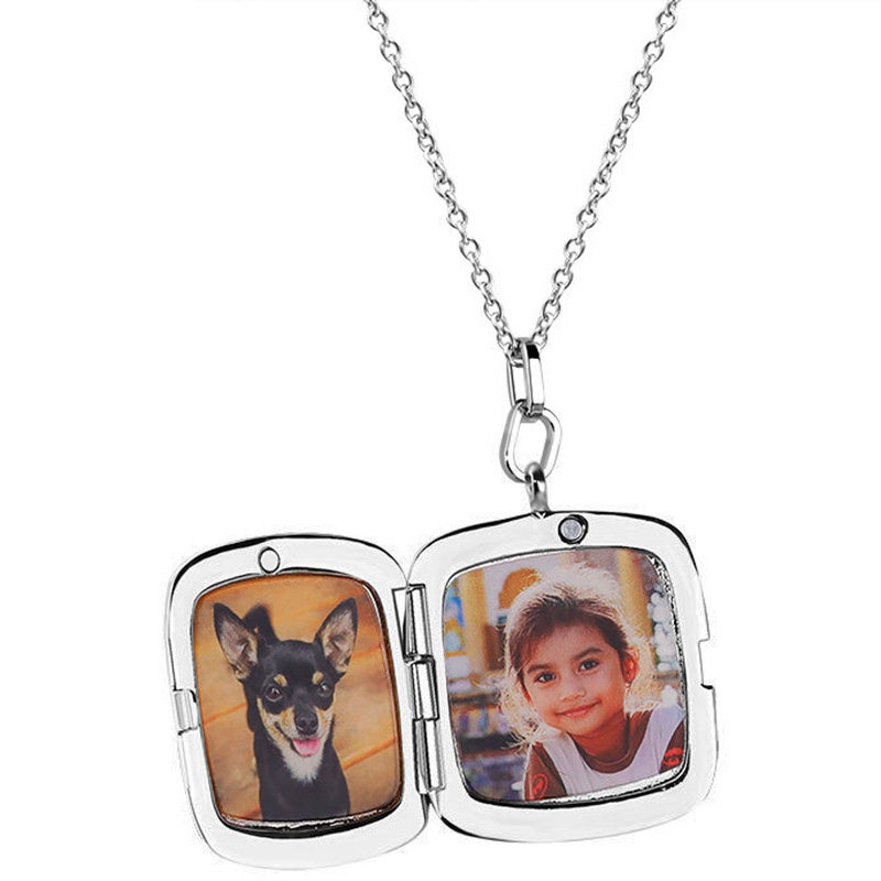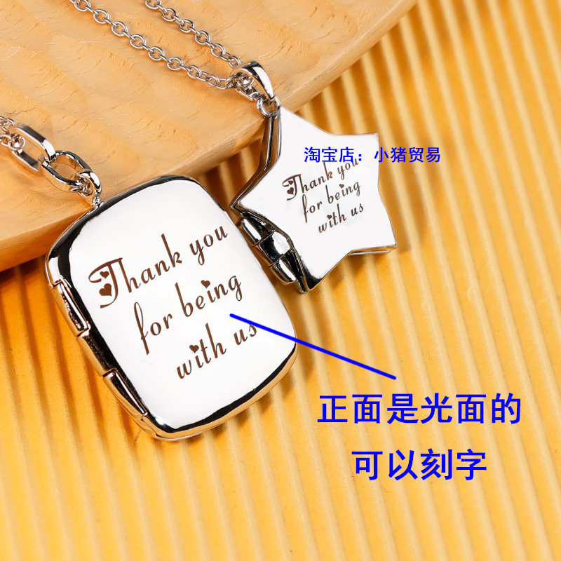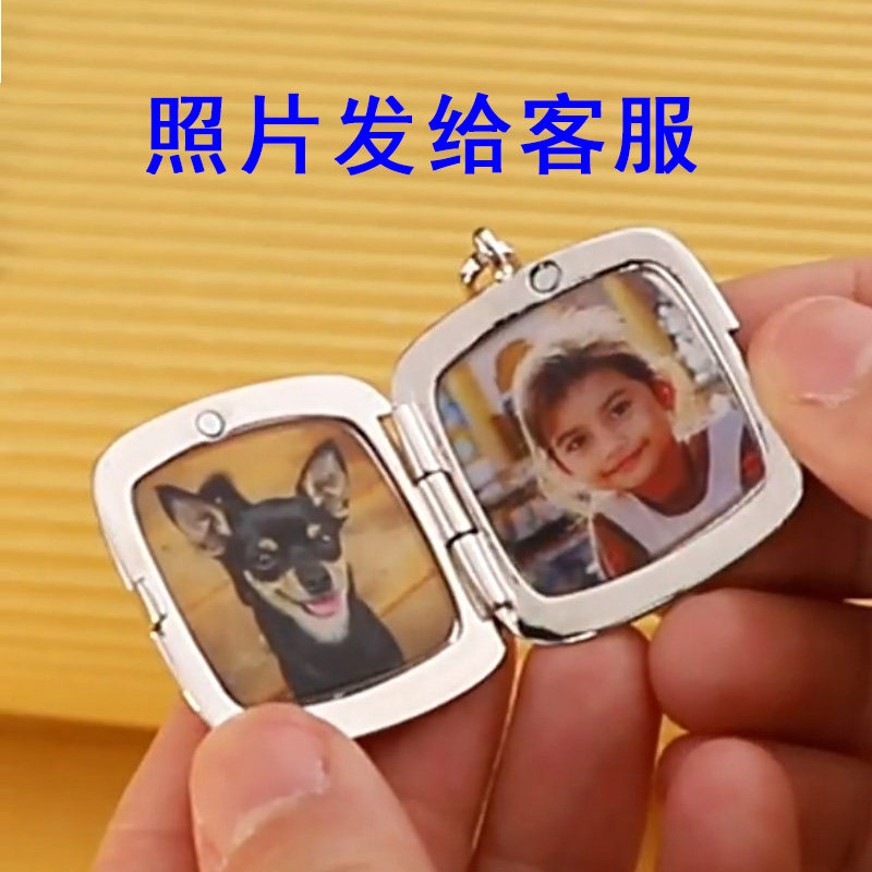 定制照片项链刻字彩印翻盖长方形信封相框钛钢刻打开吊坠相盒男女