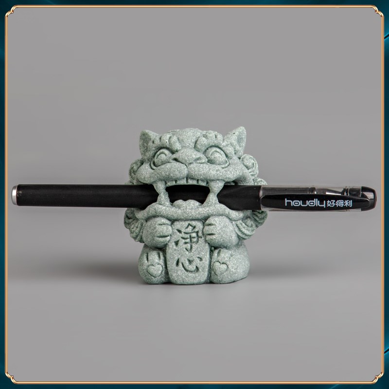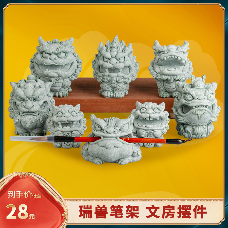 器物志 青砂石瑞兽麒麟文房四宝笔搁金蟾笔架装饰摆件神龙镇纸尺