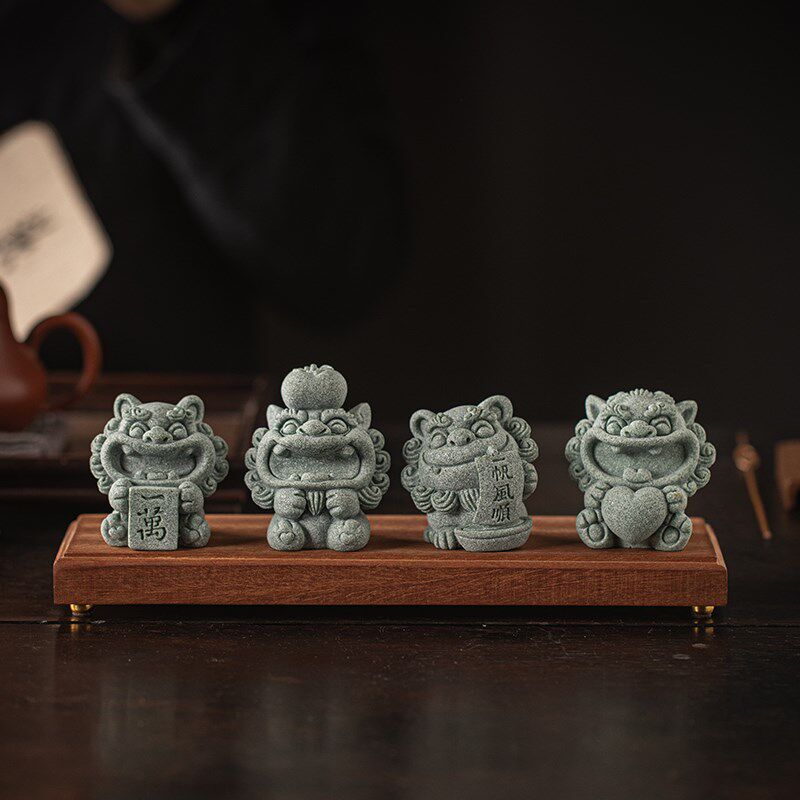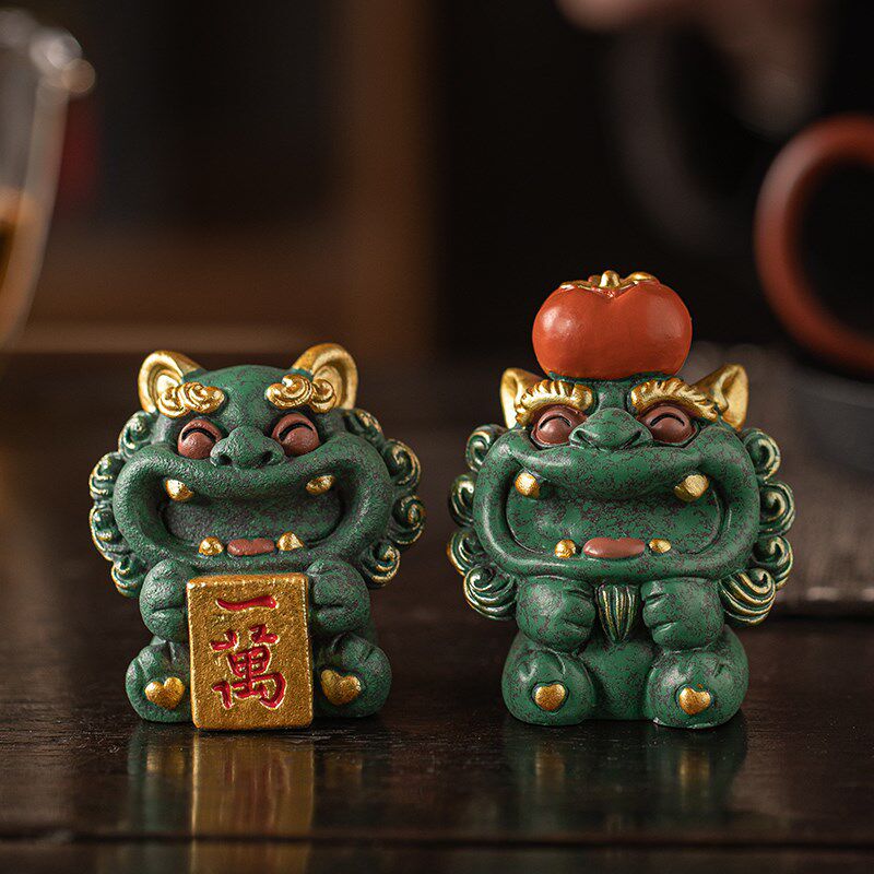 新中式石狮子万事顺心桌面装饰摆件公司开业乔迁礼品定制logo高档