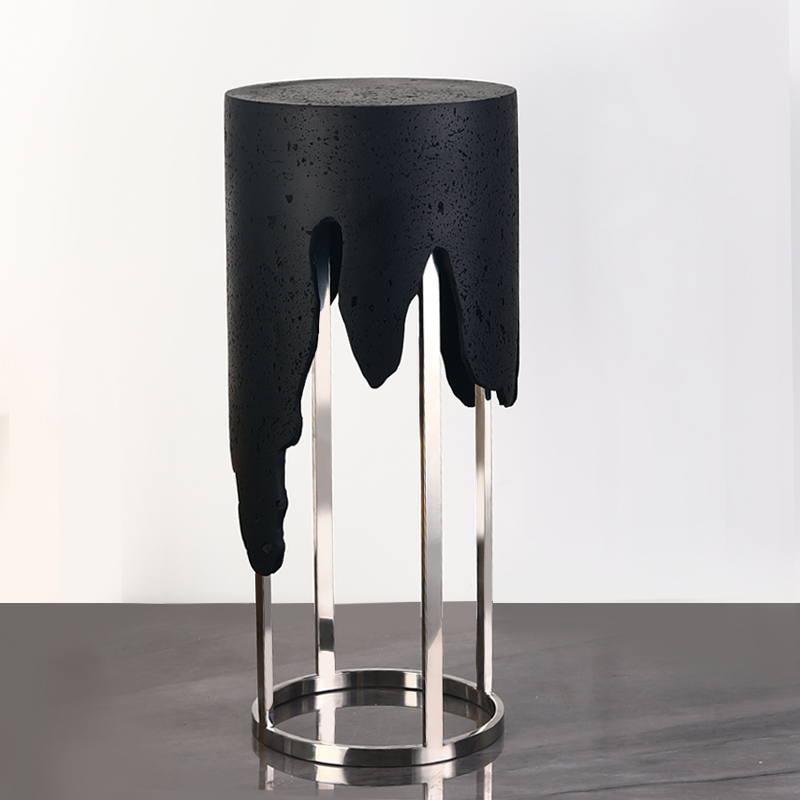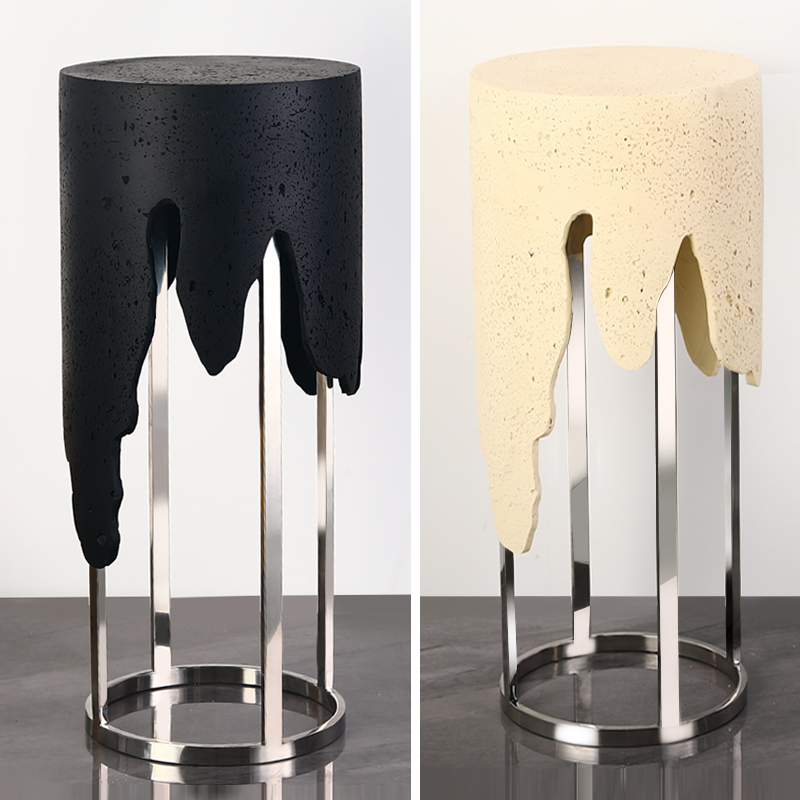 大理石底座圆形石墩石柱客厅电视柜旁落地展示Q架基座洞石雕塑摆