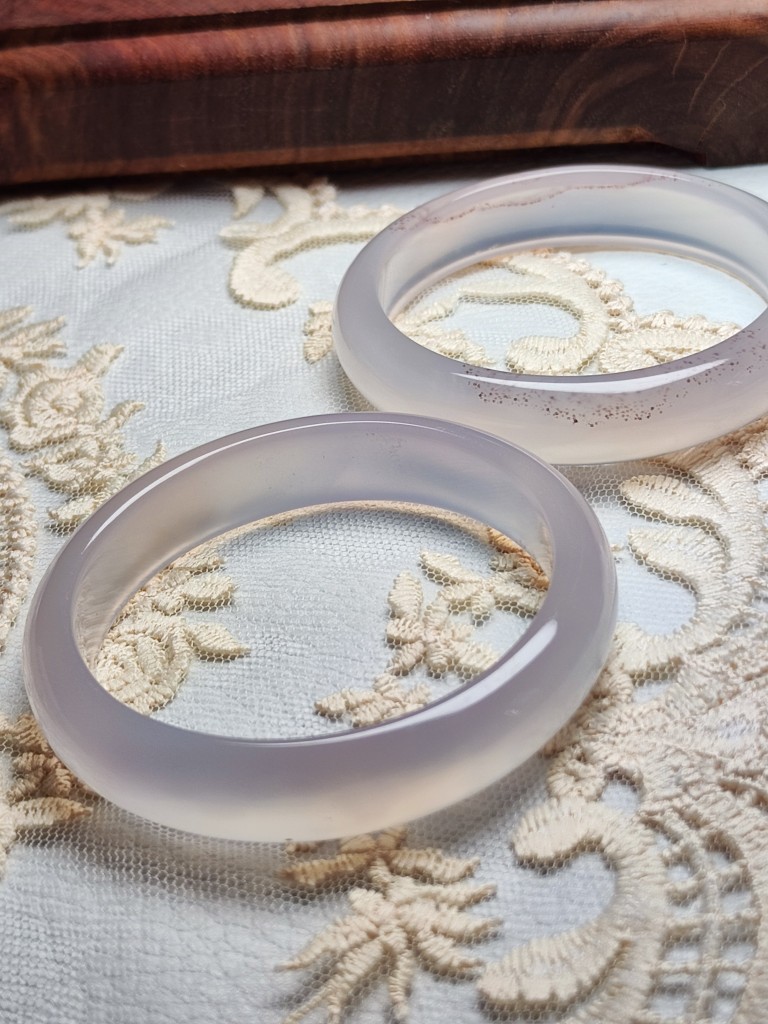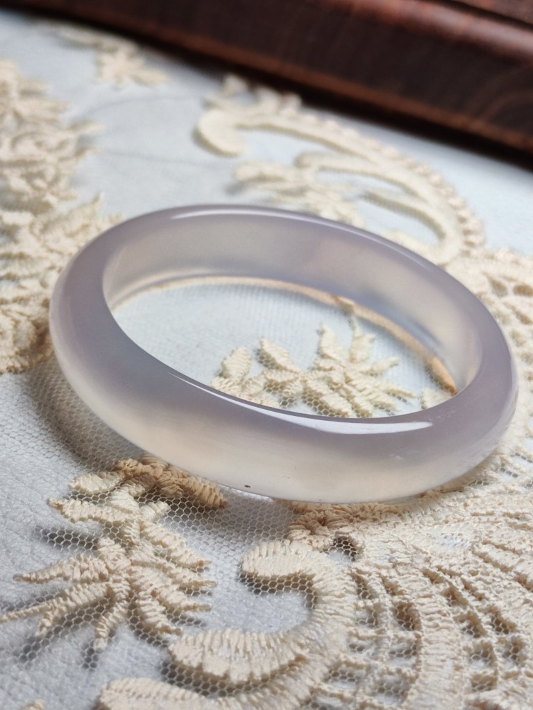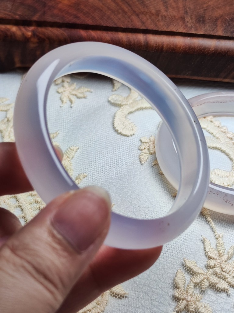 一物一图天然紫罗兰玉髓手镯高冰淡紫玛瑙正圈圆条玉镯荔枝冻女款