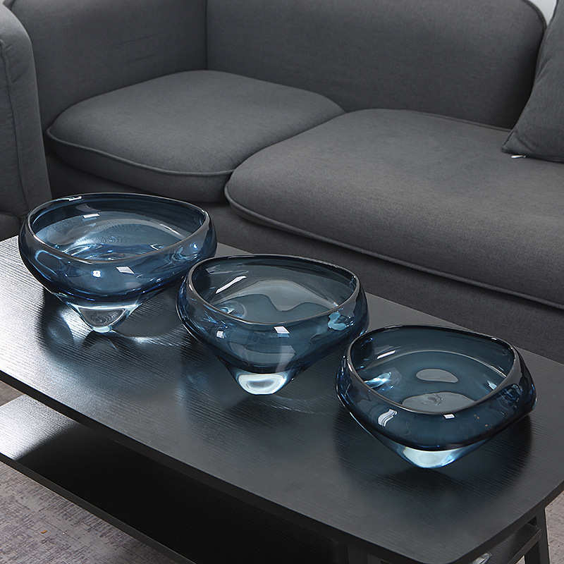 现代简约创意玻璃水果盘 软装家居饰品样板间茶几摆件餐桌面设