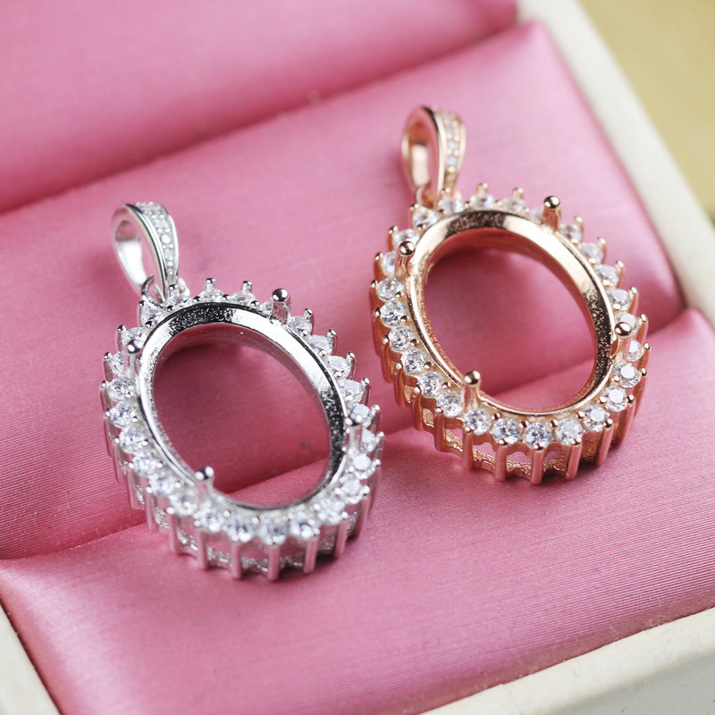 戴妃款吊坠托空托925纯银镀18K金未镶嵌椭圆形尖底宝石女挂坠底座