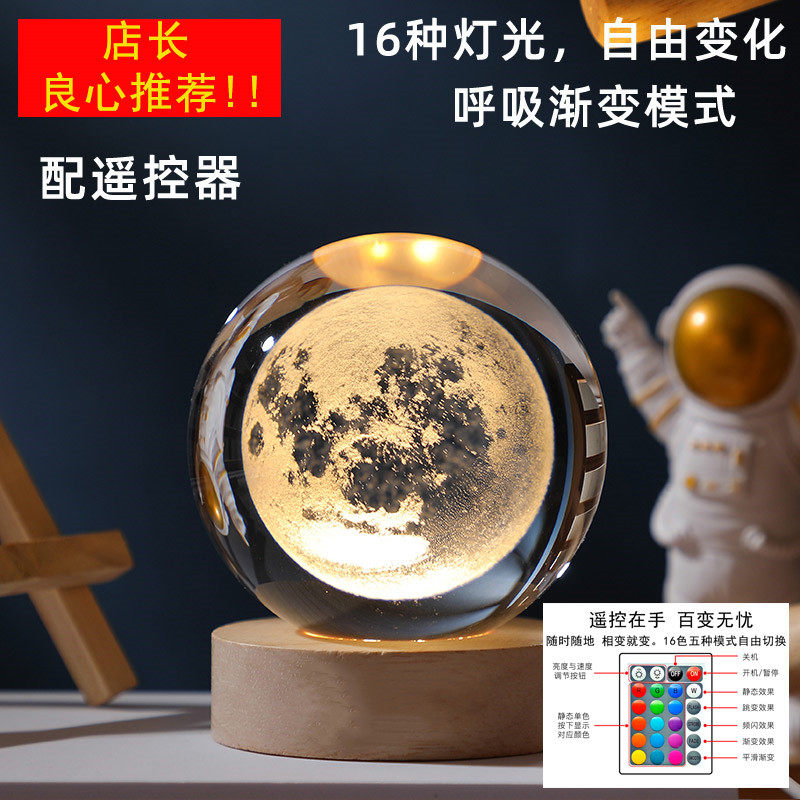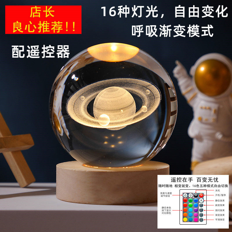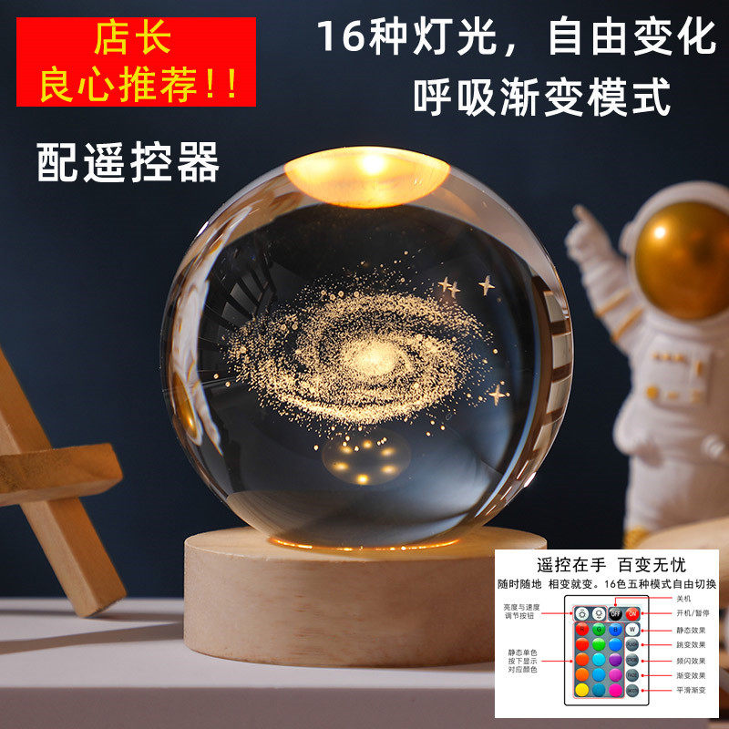 遥控发光星空水晶球小夜灯桌面摆件玻璃球生日礼物女生高级感小众