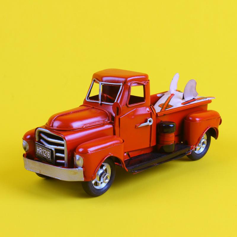 复古手工铁皮汽车模型 旅行版皮卡车汽车模型/铁皮车模工艺品