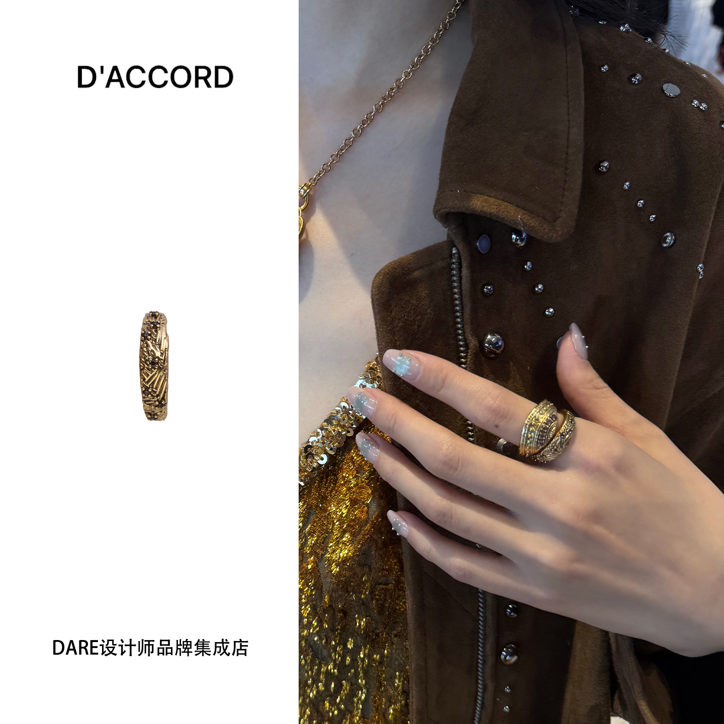 Dare买手店 DACCORD鎏金雕刻做旧戒指金色复古原创设计小众百搭女