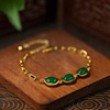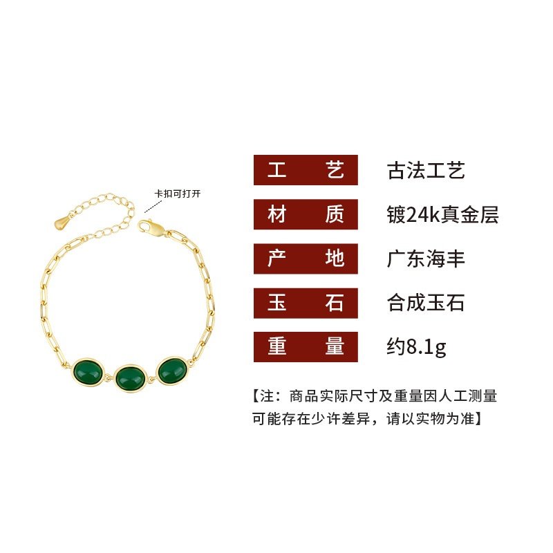 艾尔缘古法镀金仿和田玉碧玉简约气质平安喜乐镂空手链百搭手饰