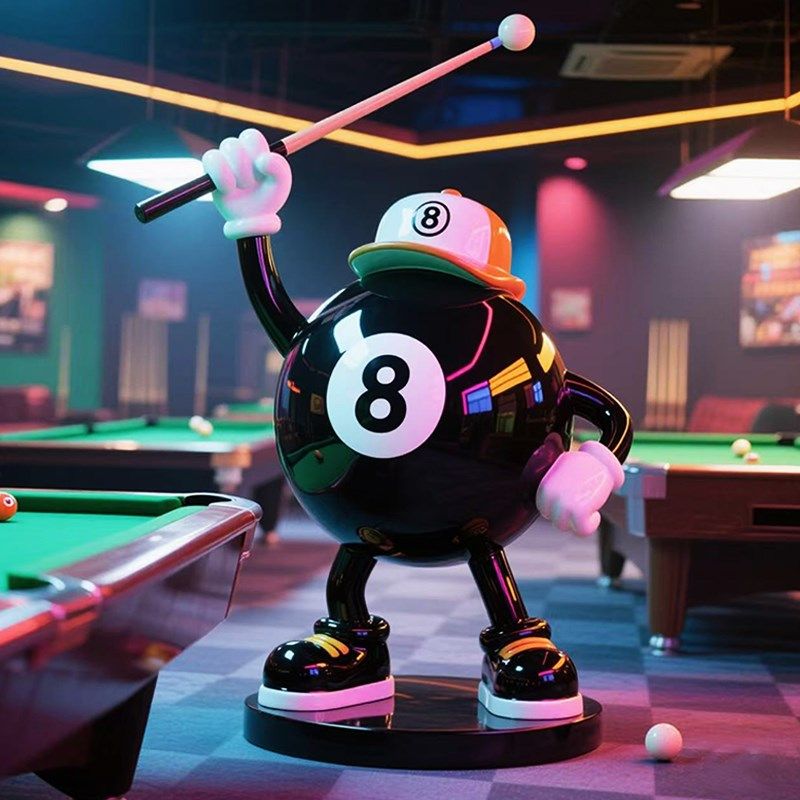 台球厅黑8卡通公仔模型玻璃钢雕塑桌球俱乐部店铺T门口装饰大摆件